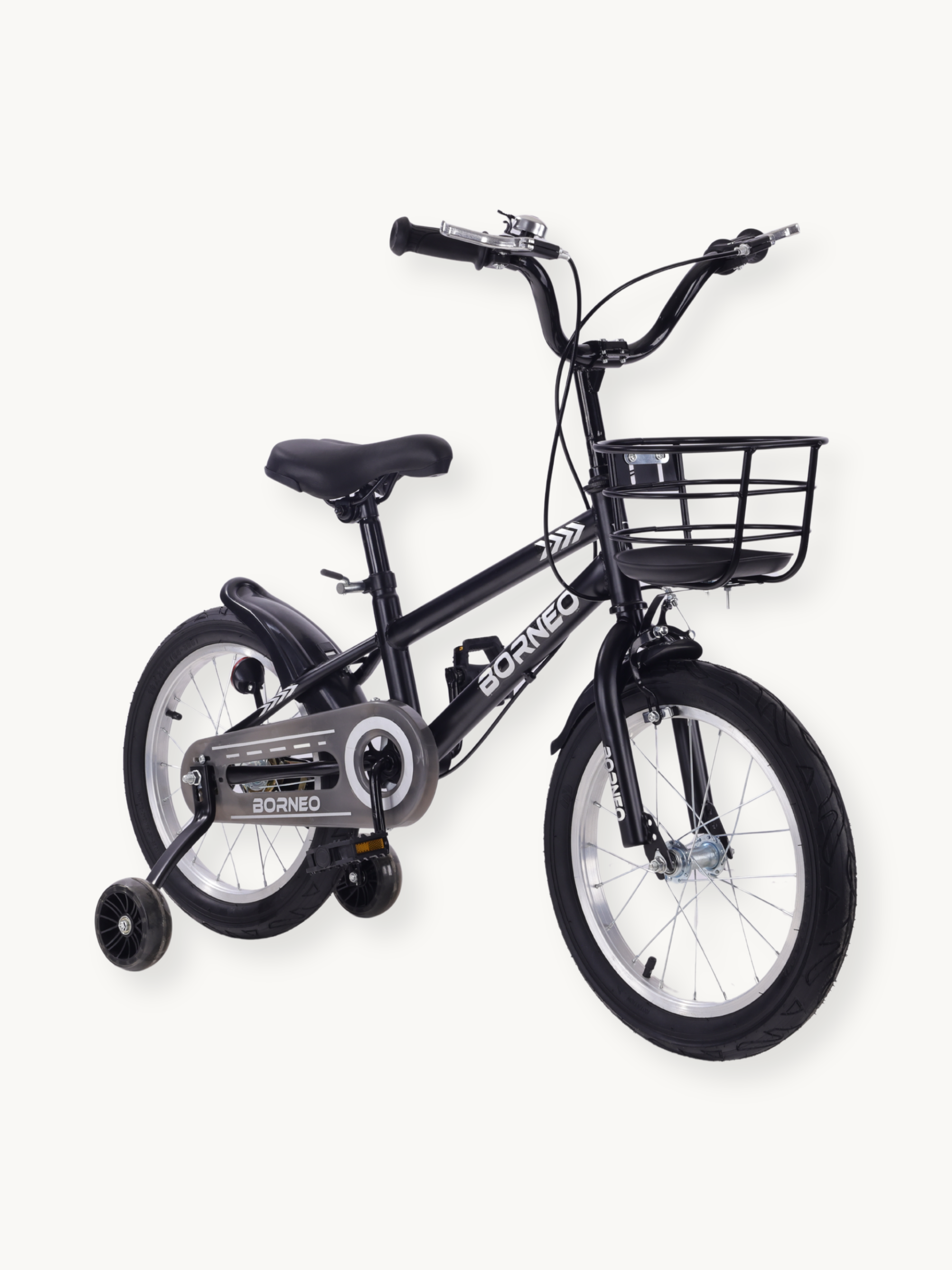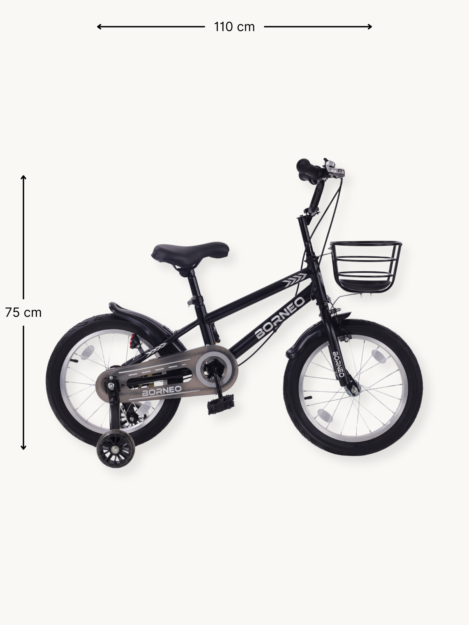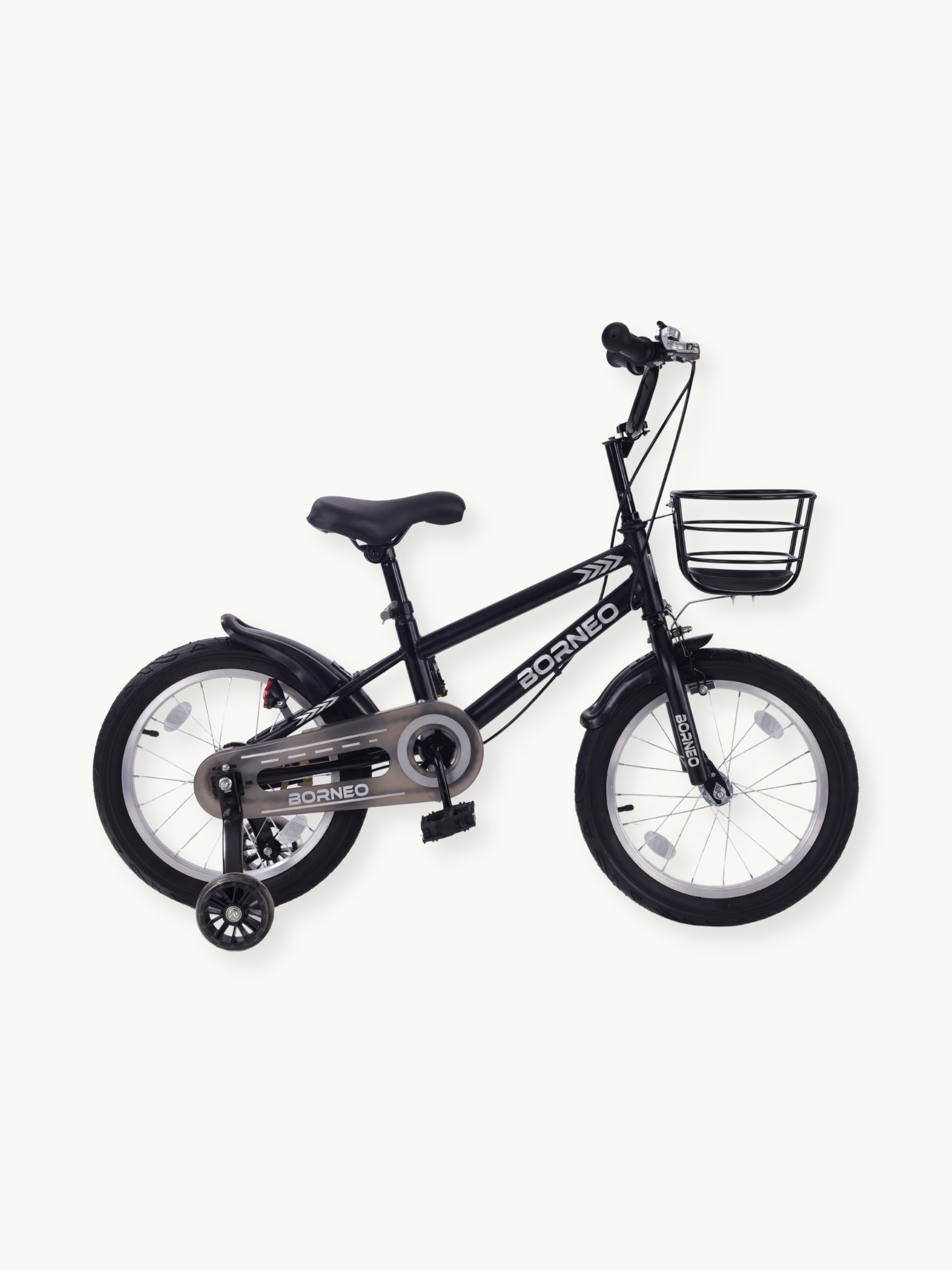 Černý povrch a dětem přátelský design dělají z tohoto kola skutečný magnet na pohledy. Borneo dokonale zapadá do světa malých chlapců a každou jízdu činí zábavnou a vzrušující.