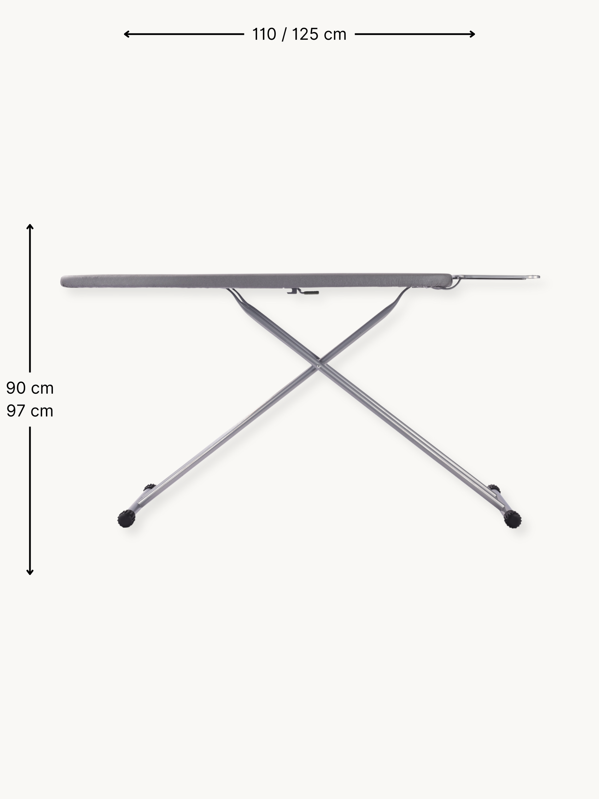Se svou velikostí 110x33 nebo 125x45 cm je toto žehlicí prkno ideální pro menší prostory, přičemž stále nabízí dostatečnou plochu pro každodenní žehlicí úkoly. Světle šedý povrch dodává prknu moderní a neutrální vzhled.