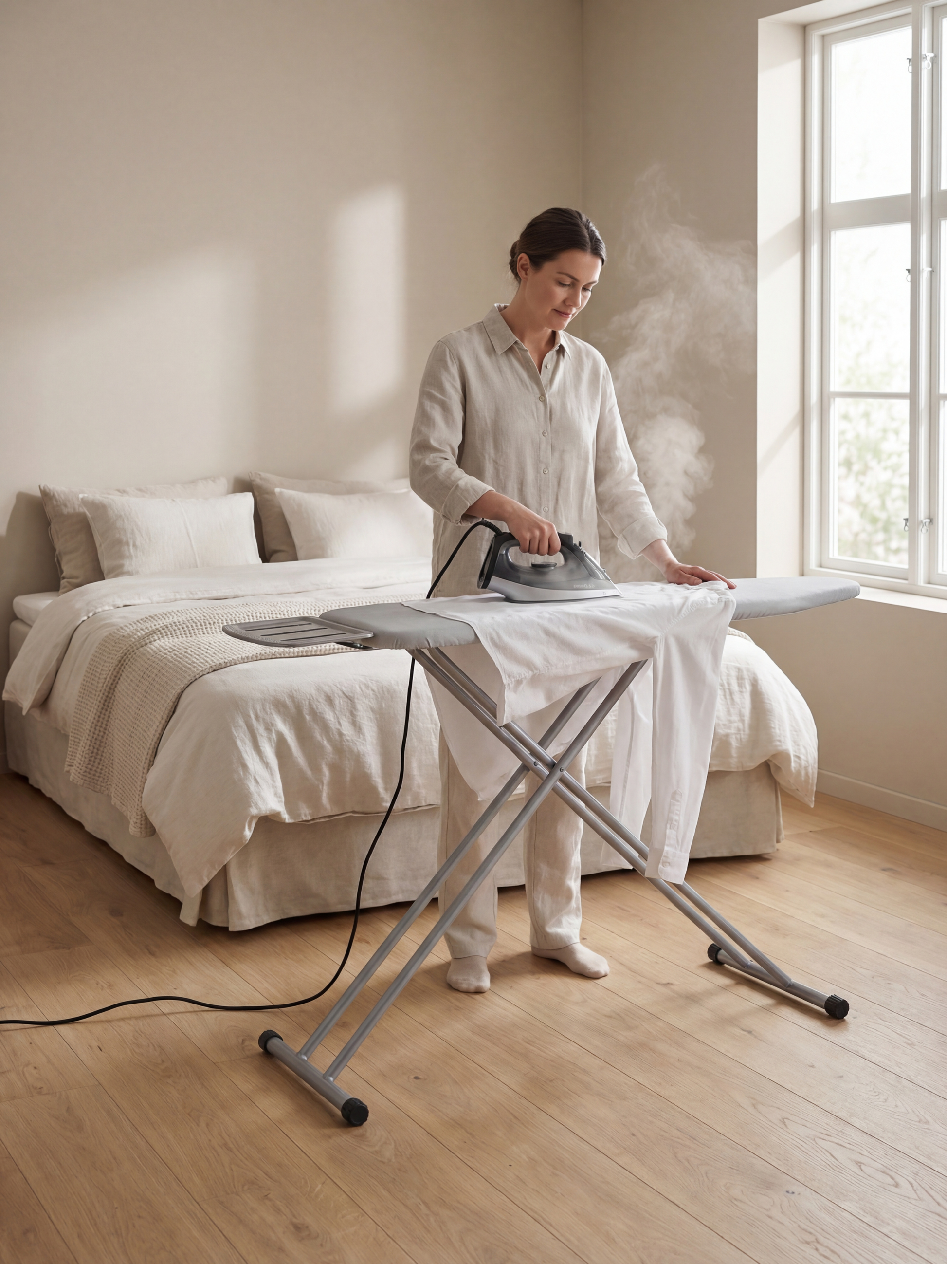 Pevný držák na parní jednotku poskytuje bezpečné místo pro parní generátor nebo parní žehličku. To vám umožňuje žehlit pohodlně a bezpečně, aniž byste museli dělat kompromisy v oblasti stability nebo snadnosti použití.