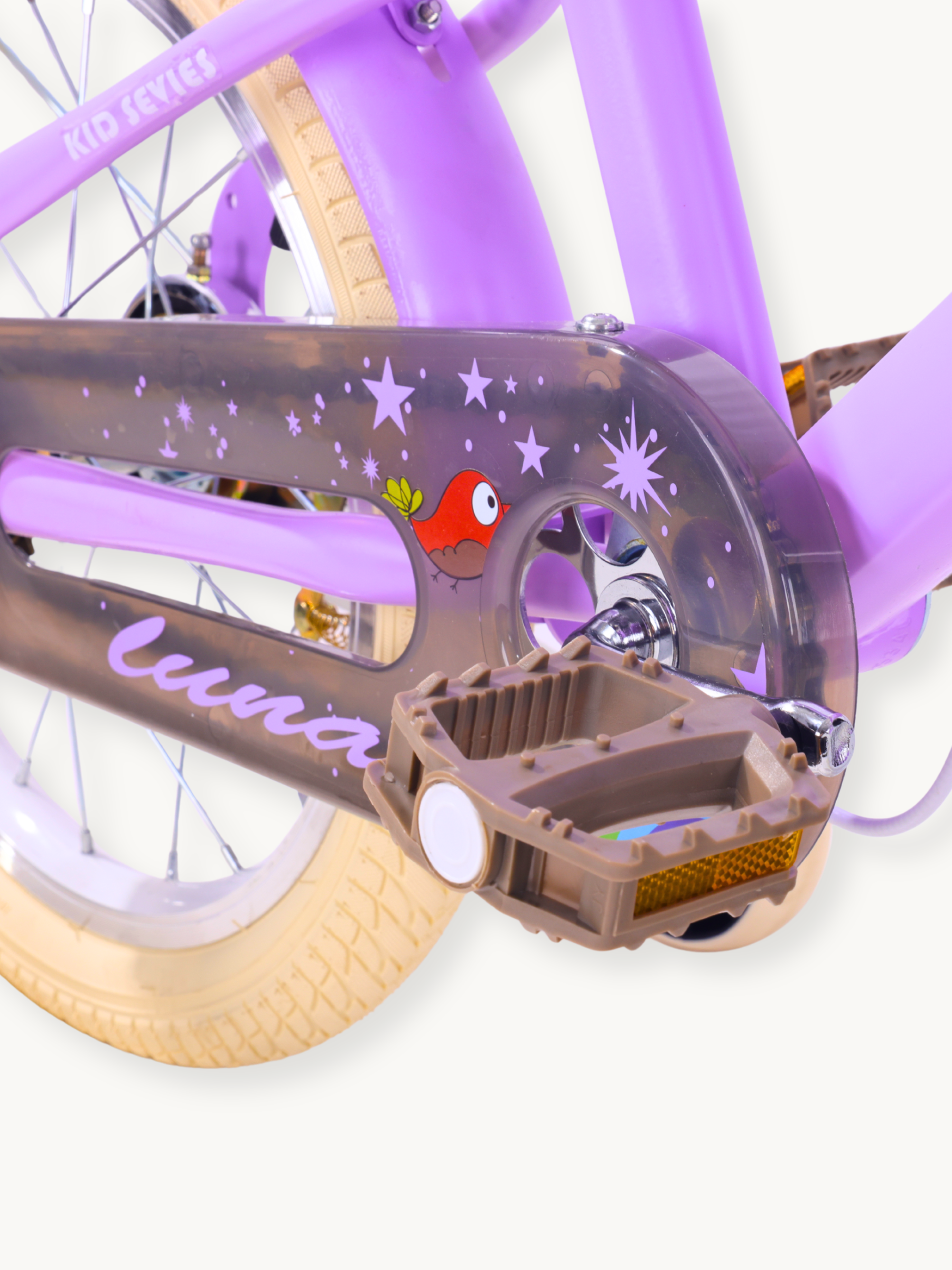 Den lilla finish og det børnevenlige design gør denne cykel til et ægte blikfang. Luna passer perfekt ind i verdenen for unge piger og gør hver tur sjov og spændende.