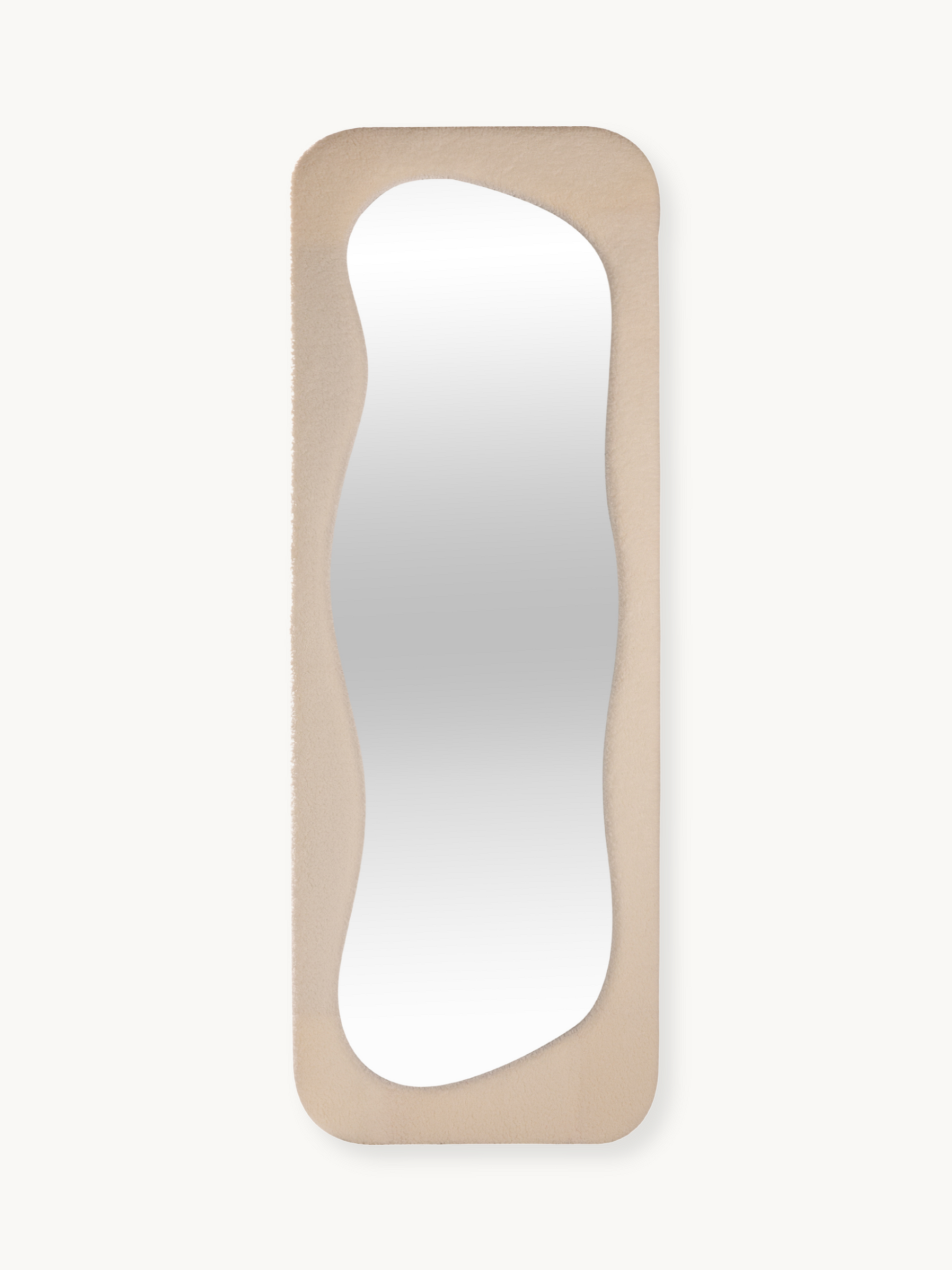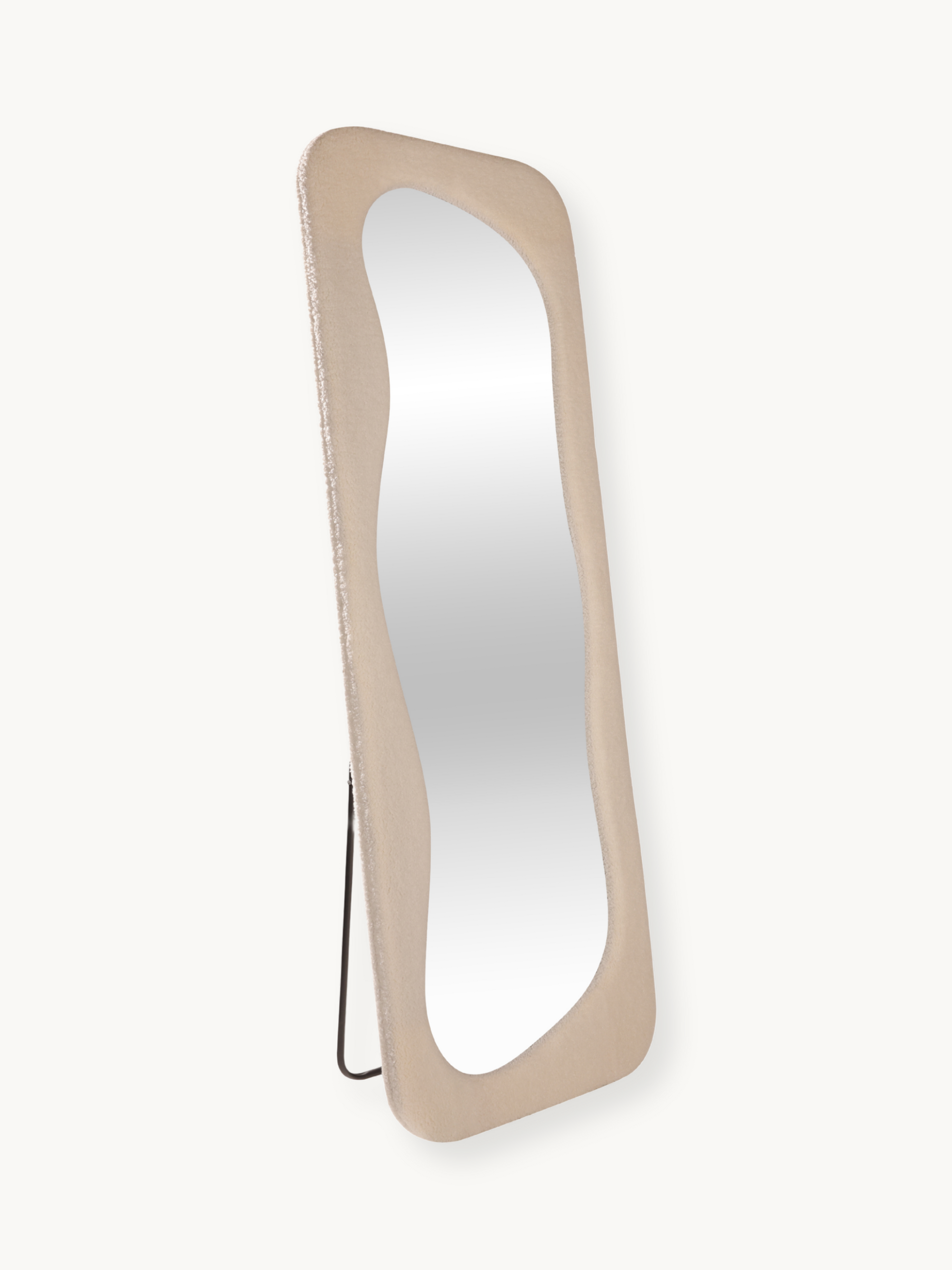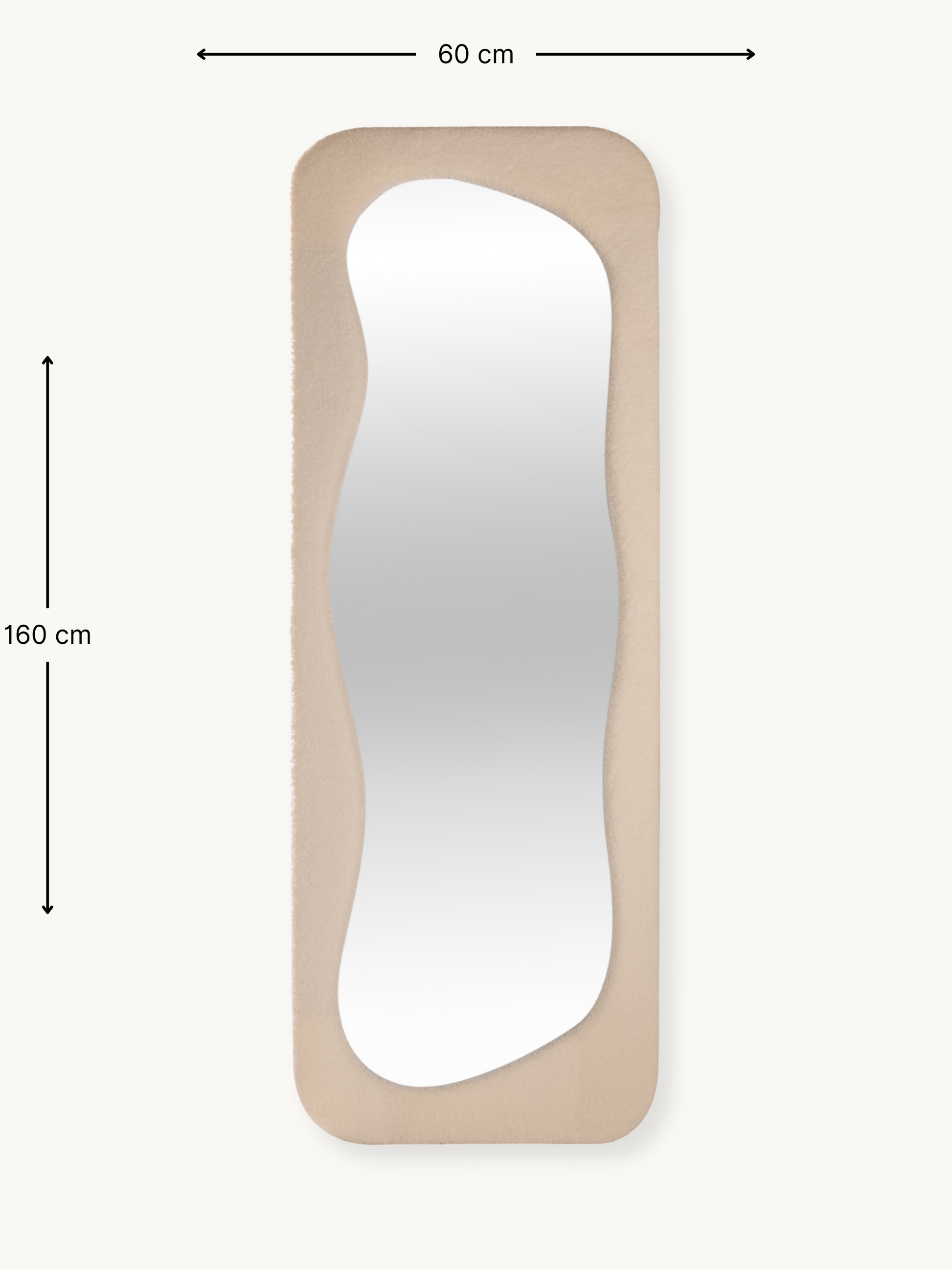 Asymmetrische staande spiegel Felis met teddystof bekleding