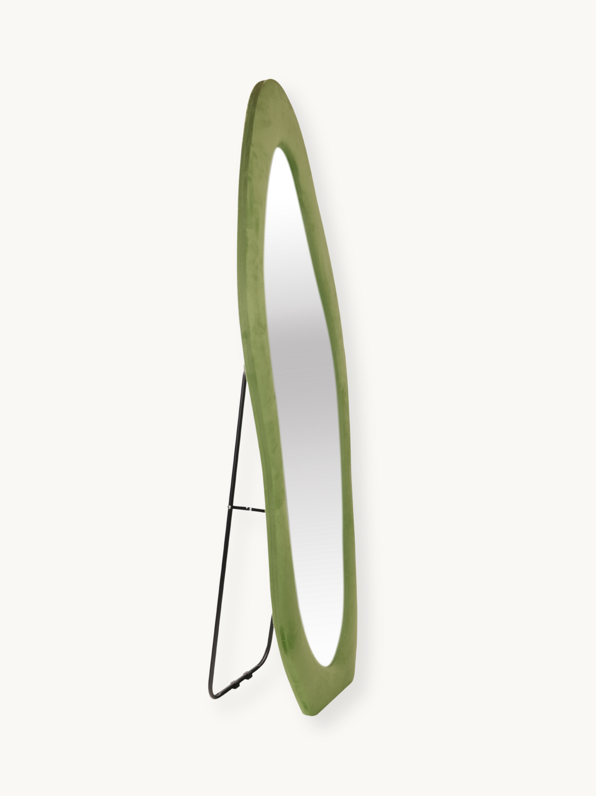 Asymmetrische staande spiegel Seraphina met suède fluwelen bekleding