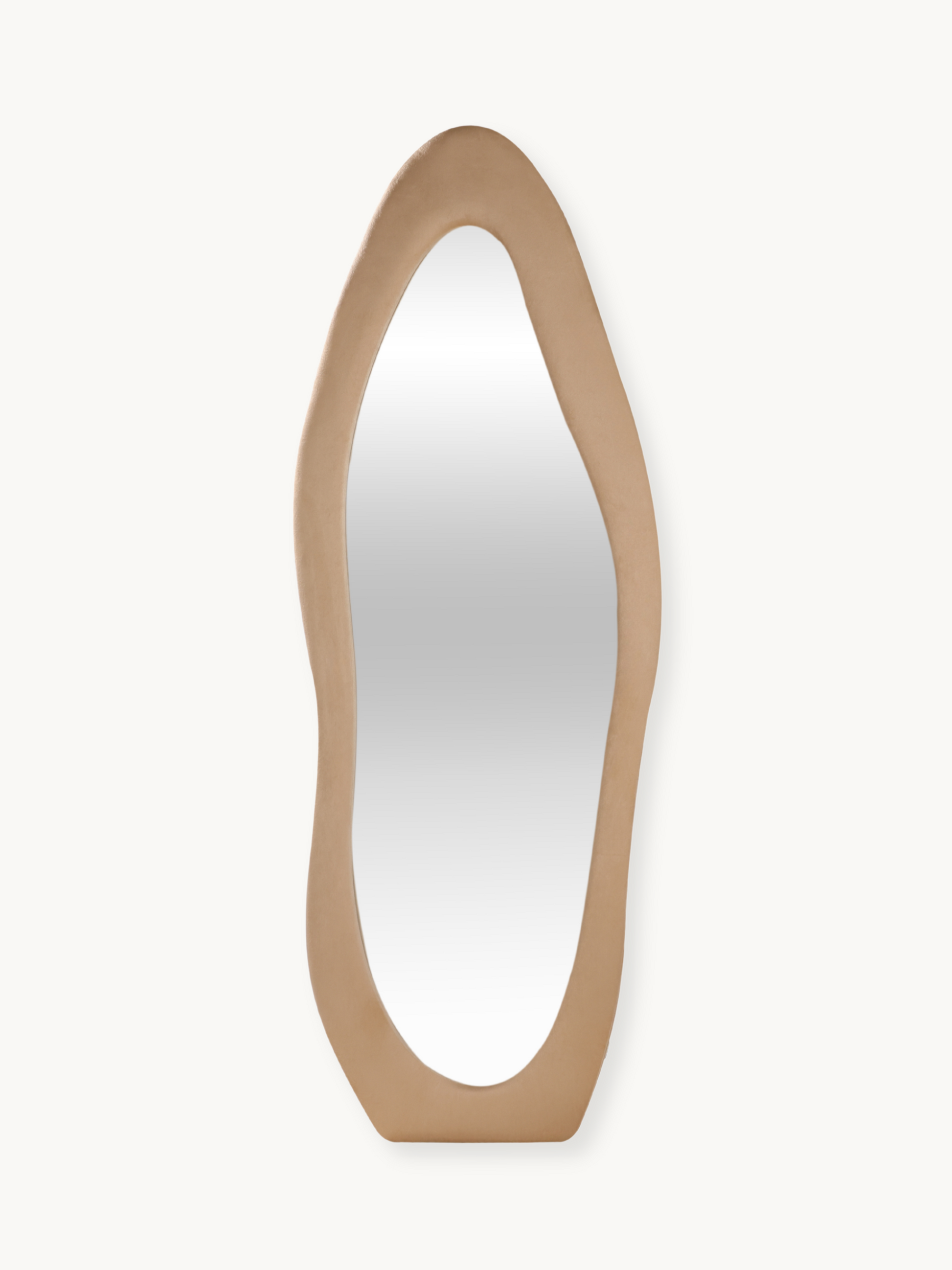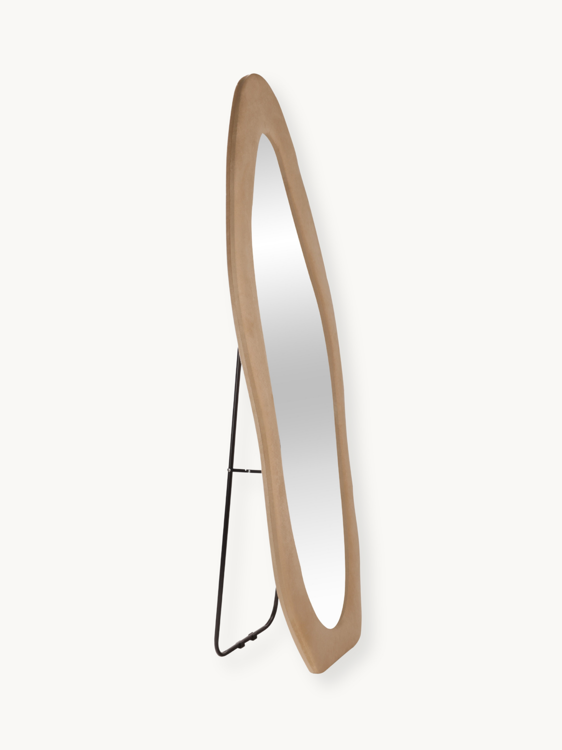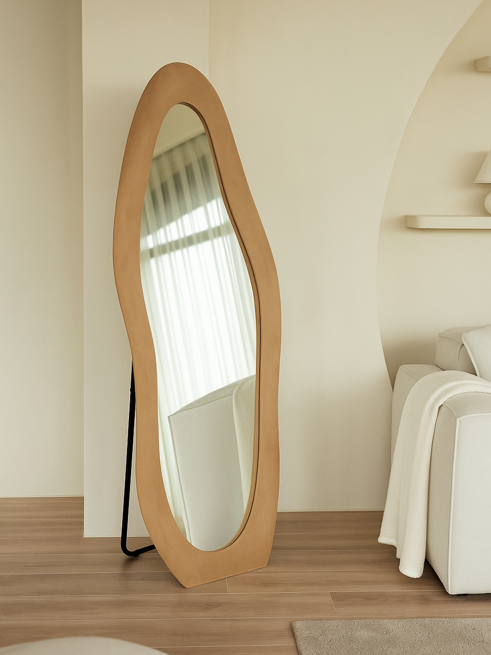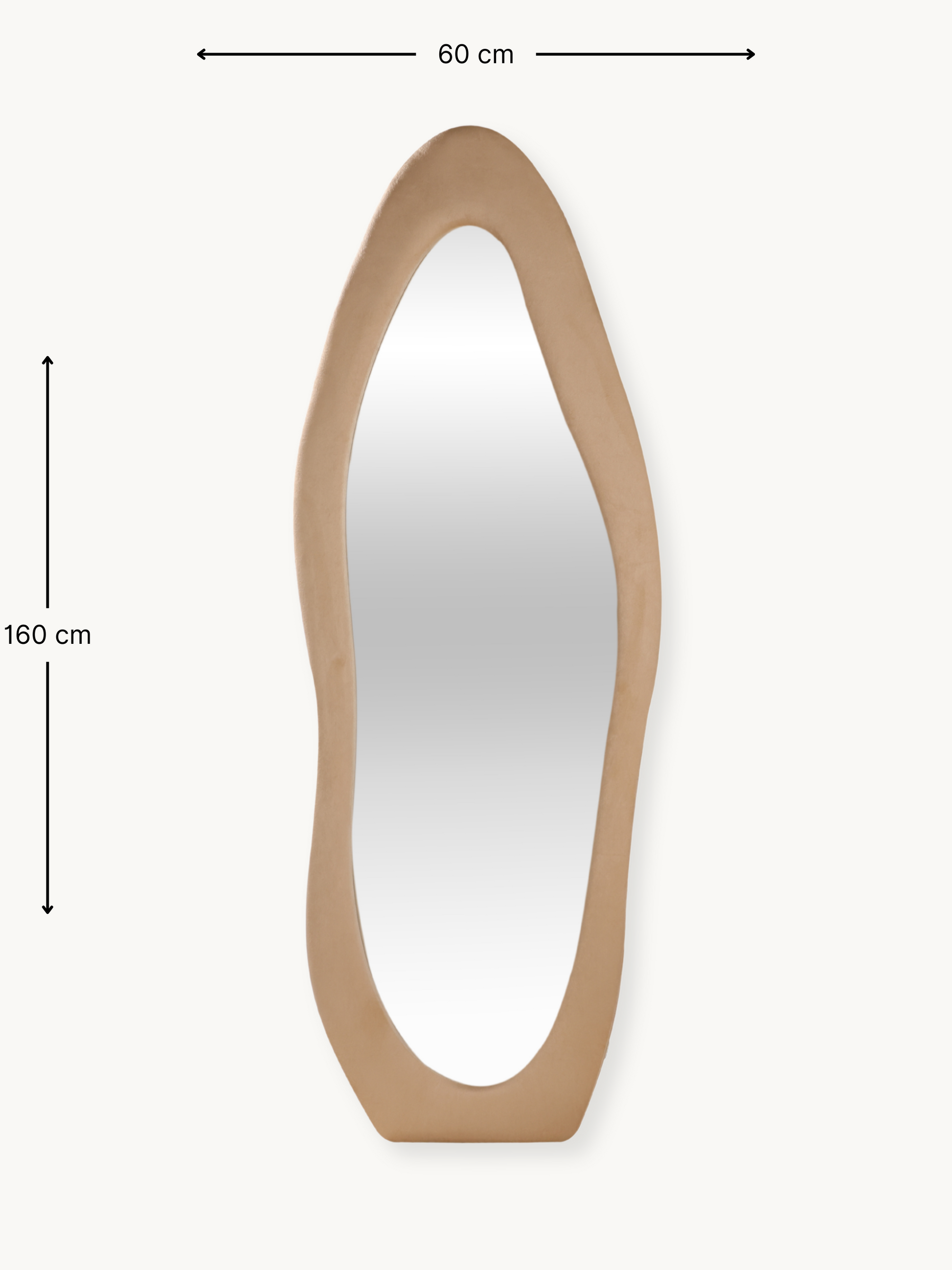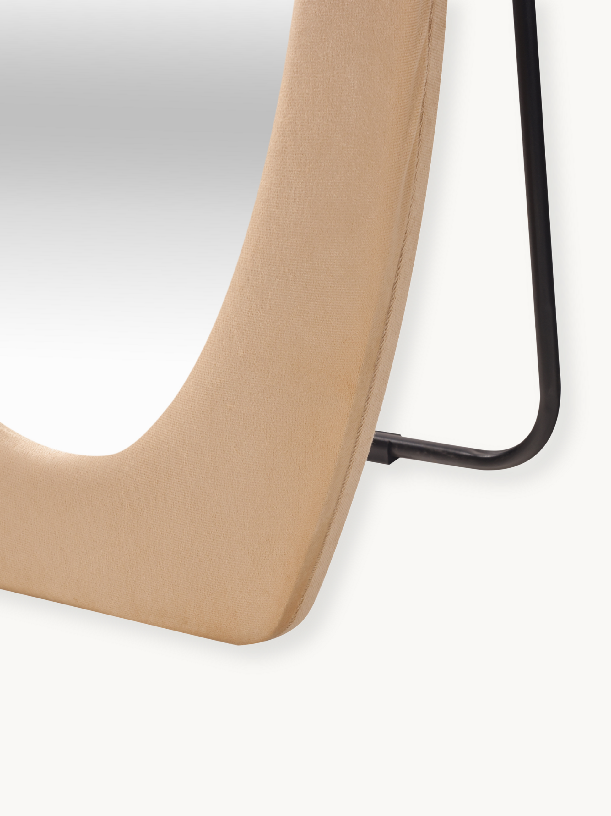 Asymmetrische staande spiegel Seraphina met suède fluwelen bekleding