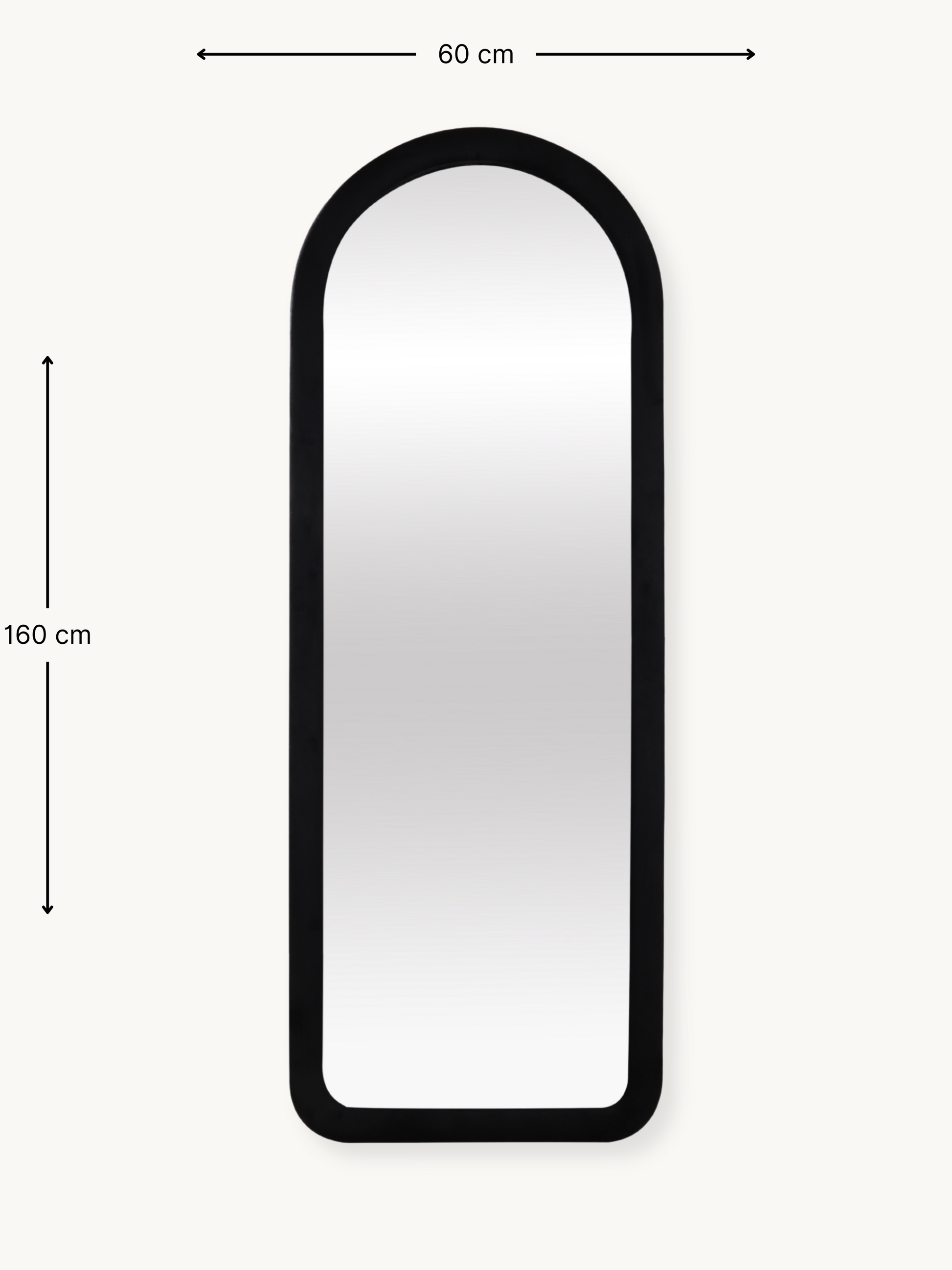 Met zijn royale afmetingen van 160x60x5 cm is deze staande spiegel op ware grootte ideaal om complete outfits te presenteren of een kamer visueel te vergroten. De spiegel is stevig en stabiel en weegt 16,7 kg.