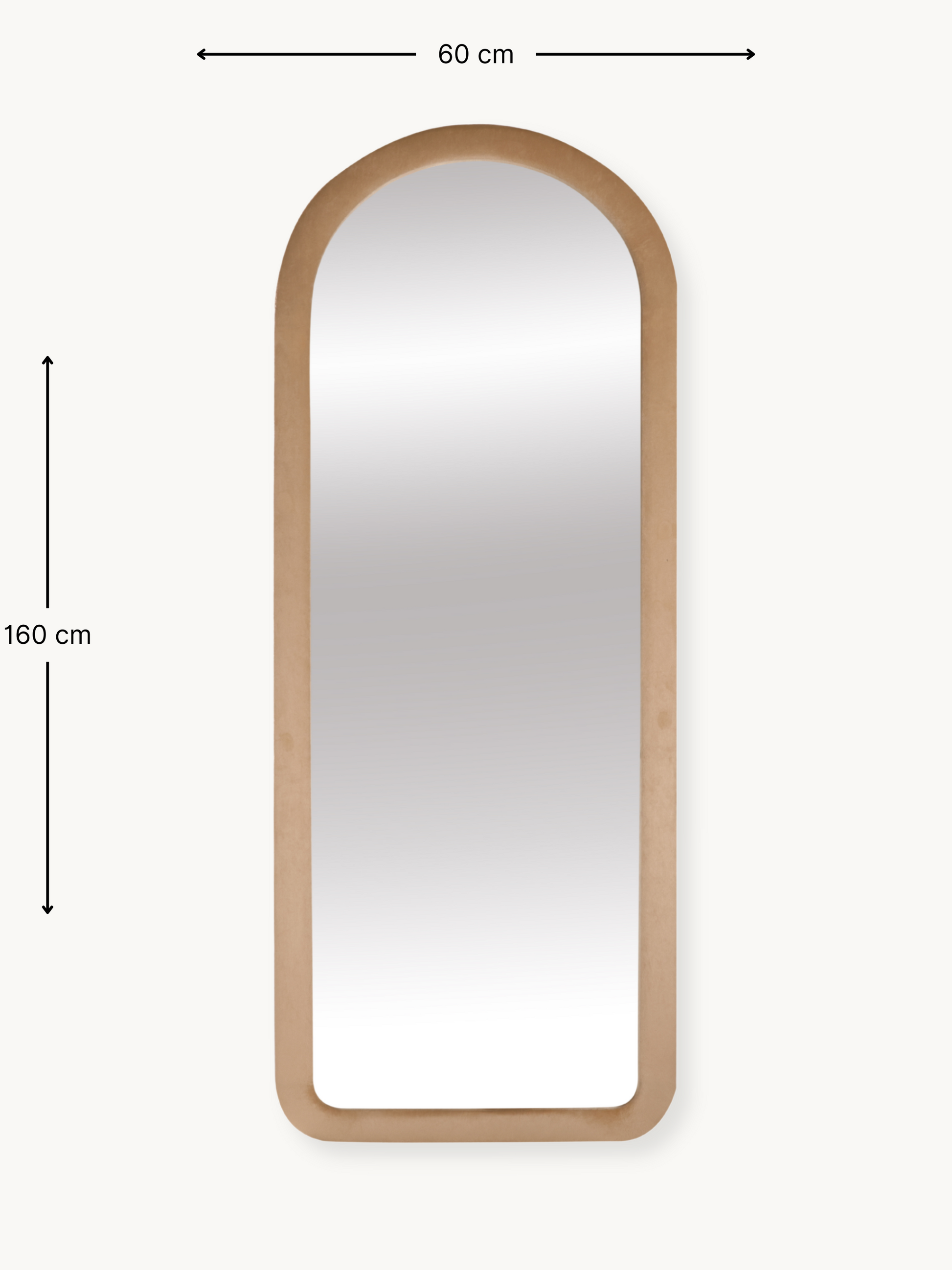 De spiegel is bekleed met een zachte suède fluwelen stof en heeft een massief spiegeloppervlak van hoogwaardig glas. De combinatie van spiegel en katoenen bekleding creëert een uniek design dat elke kamer verfraait.