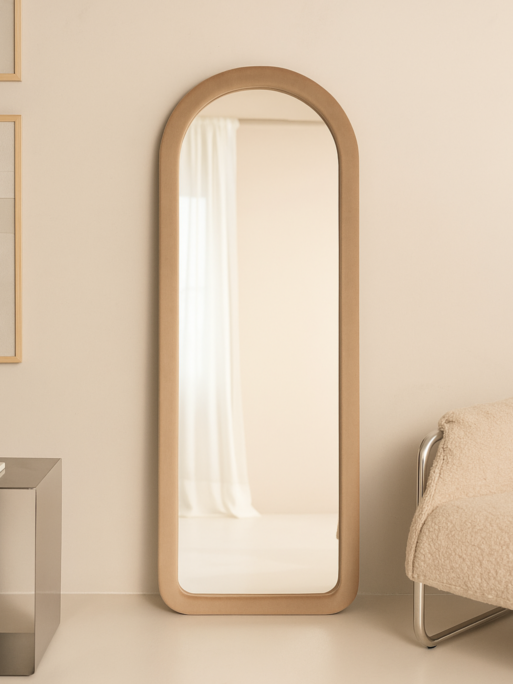1x SensaHome Gestoffeerde Staande Spiegel Ovaal - Taupe