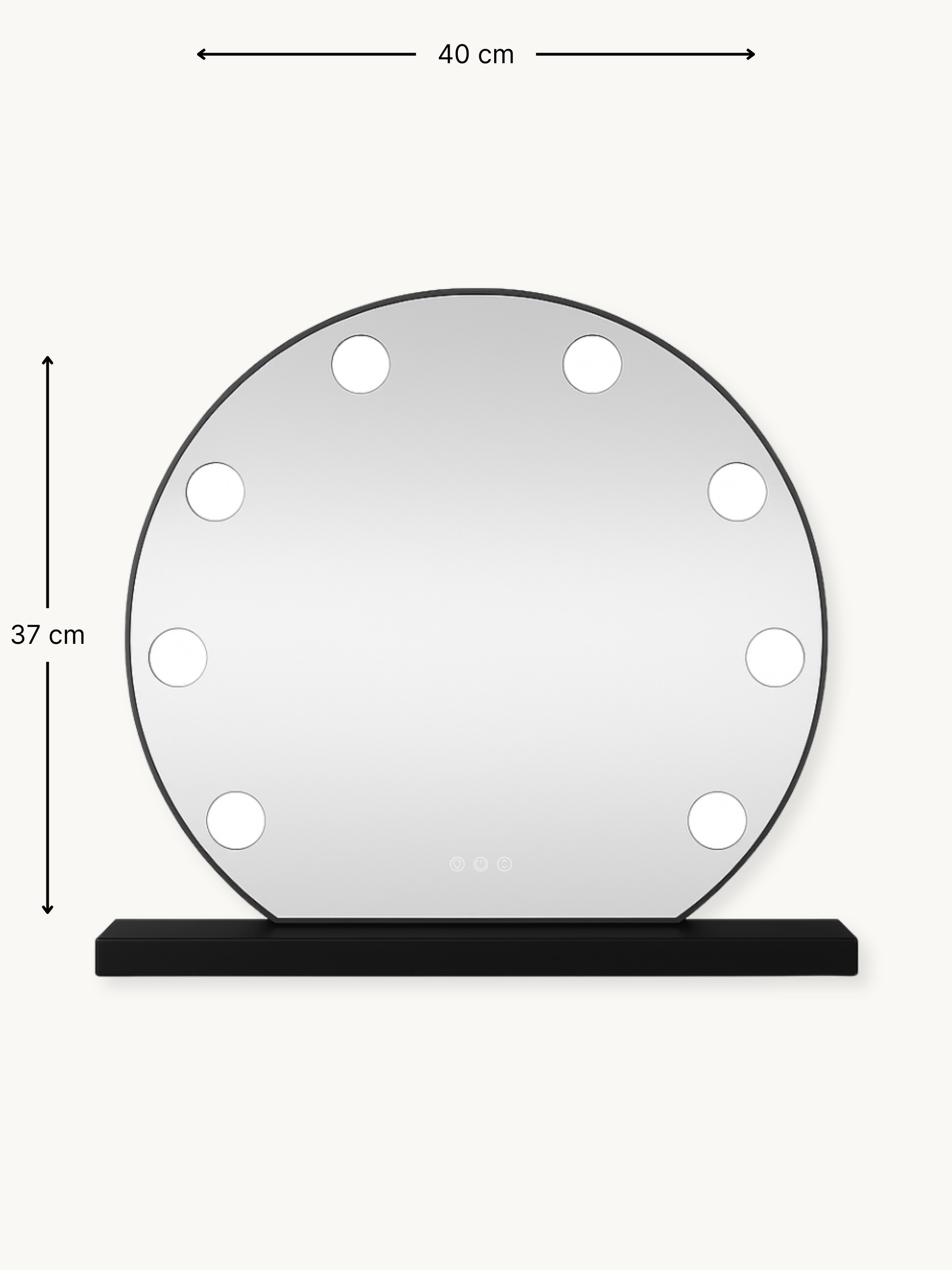 Met zijn moderne zwarte design en compacte formaat (40x10x37 cm) is deze spiegel een elegante toevoeging aan elke kamer. De lamp is verstelbaar en energiezuinig, en de spiegel zelf is lichtgewicht en gemakkelijk te verplaatsen.