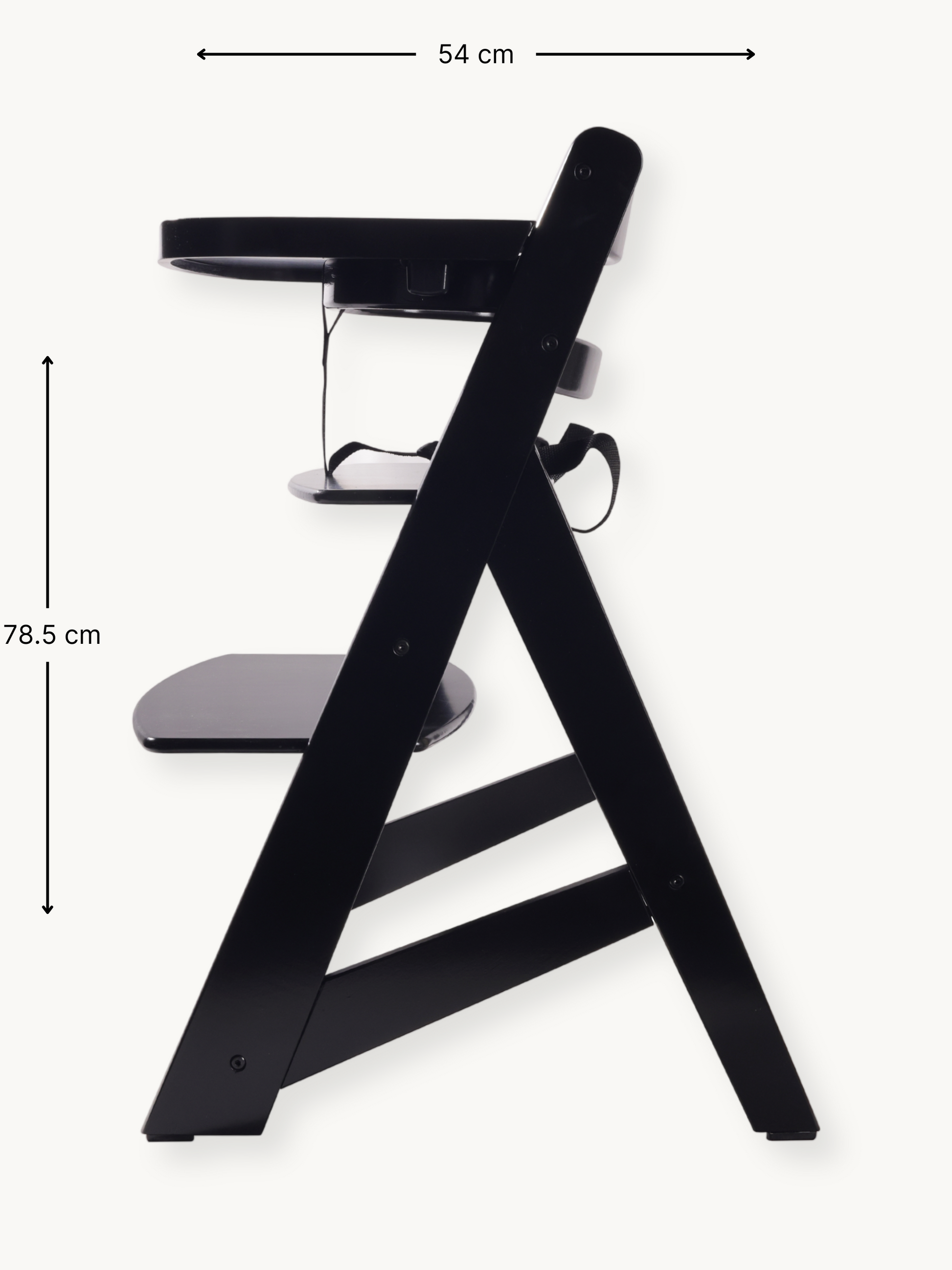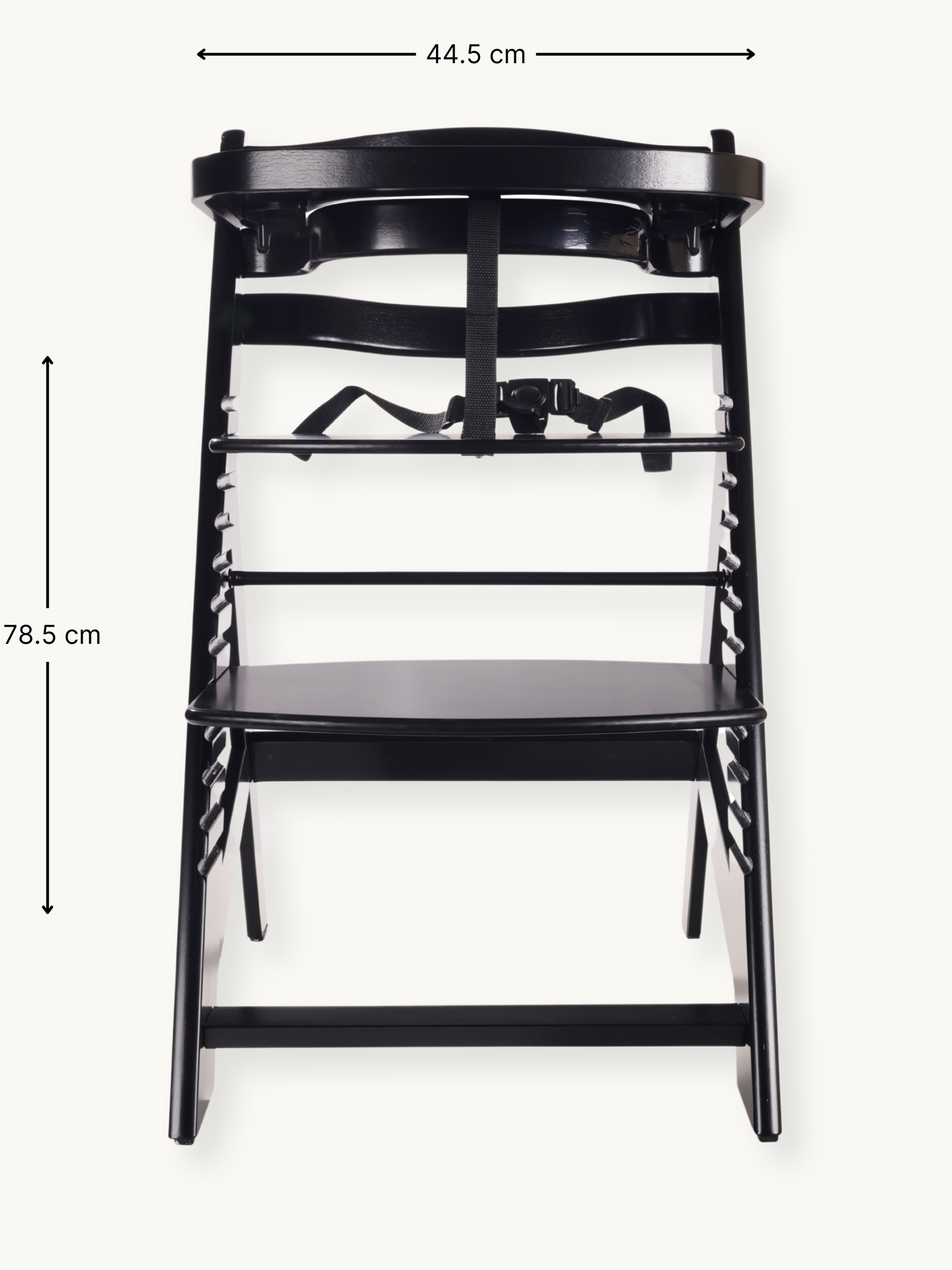 De Buxibo kinderstoel valt op door zijn tijdloze en elegante zwarte afwerking, gecombineerd met de warmte van hoogwaardig hout. Het minimalistische ontwerp past in elk interieur, van klassiek tot modern, en de duurzame constructie garandeert jarenlang betrouwbaar gebruik.