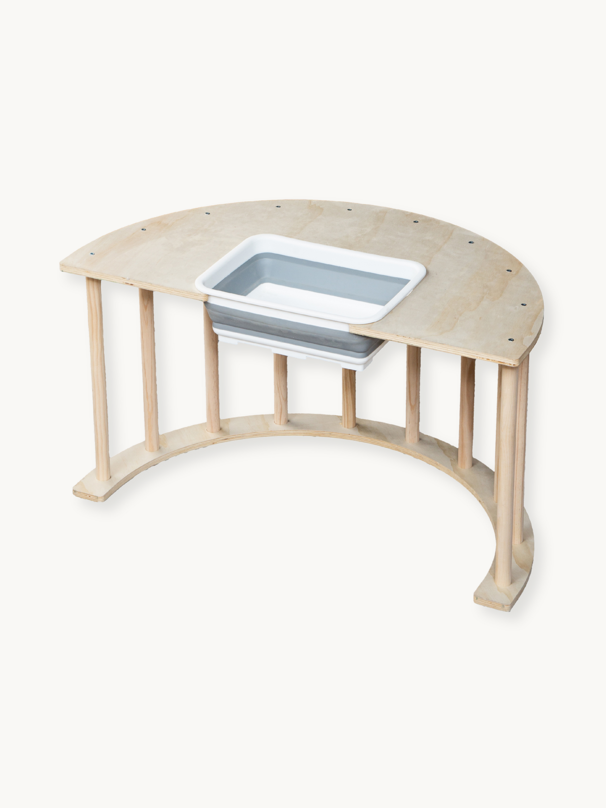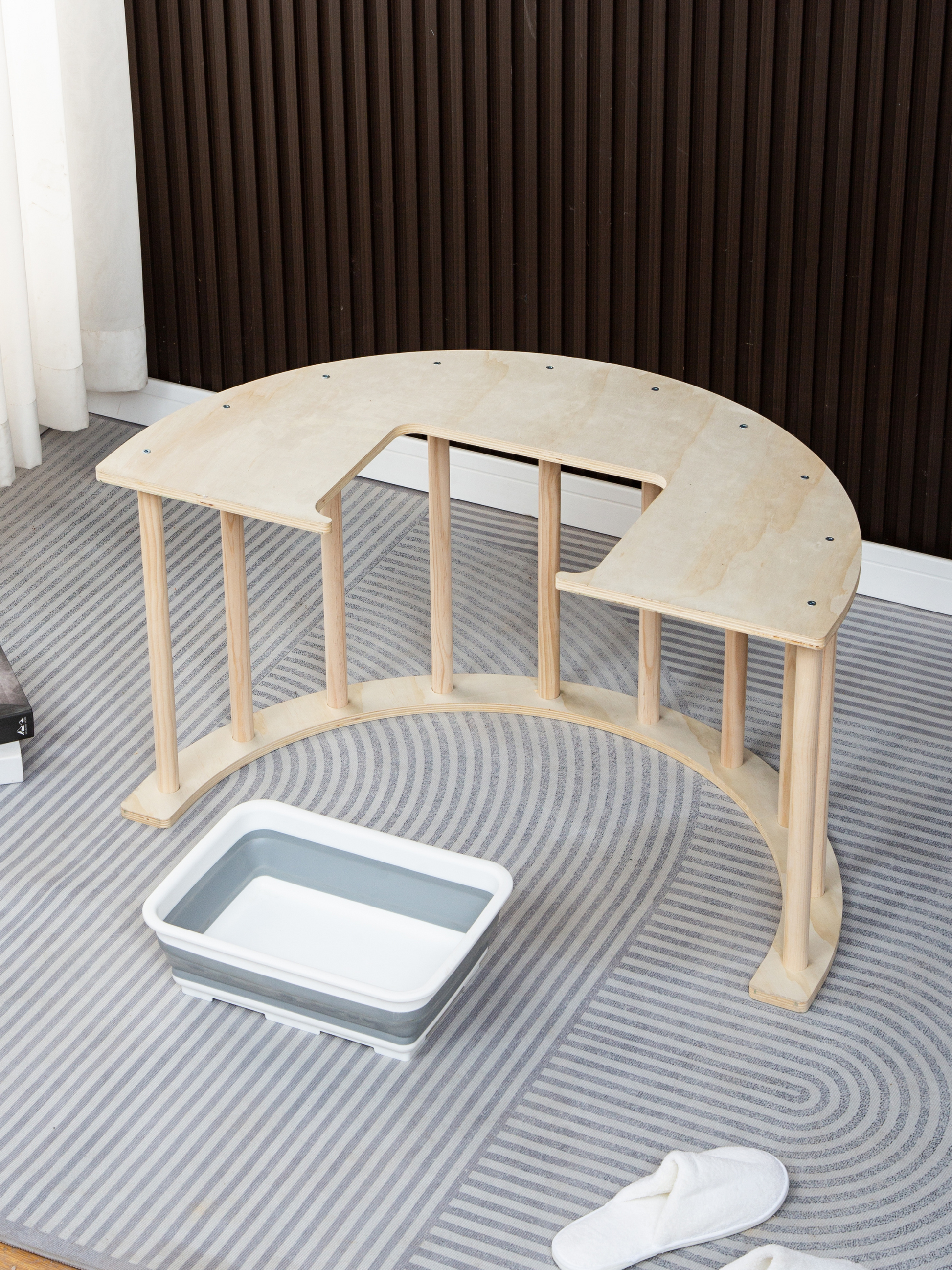 Deze speelboog kan worden gebruikt als klimbrug, klimboog en speeltafel, waardoor kinderen verschillende speelmogelijkheden hebben. De meegeleverde opbergbak maakt het gemakkelijk voor kinderen om speelgoed en knutselspullen op te bergen en te ordenen.