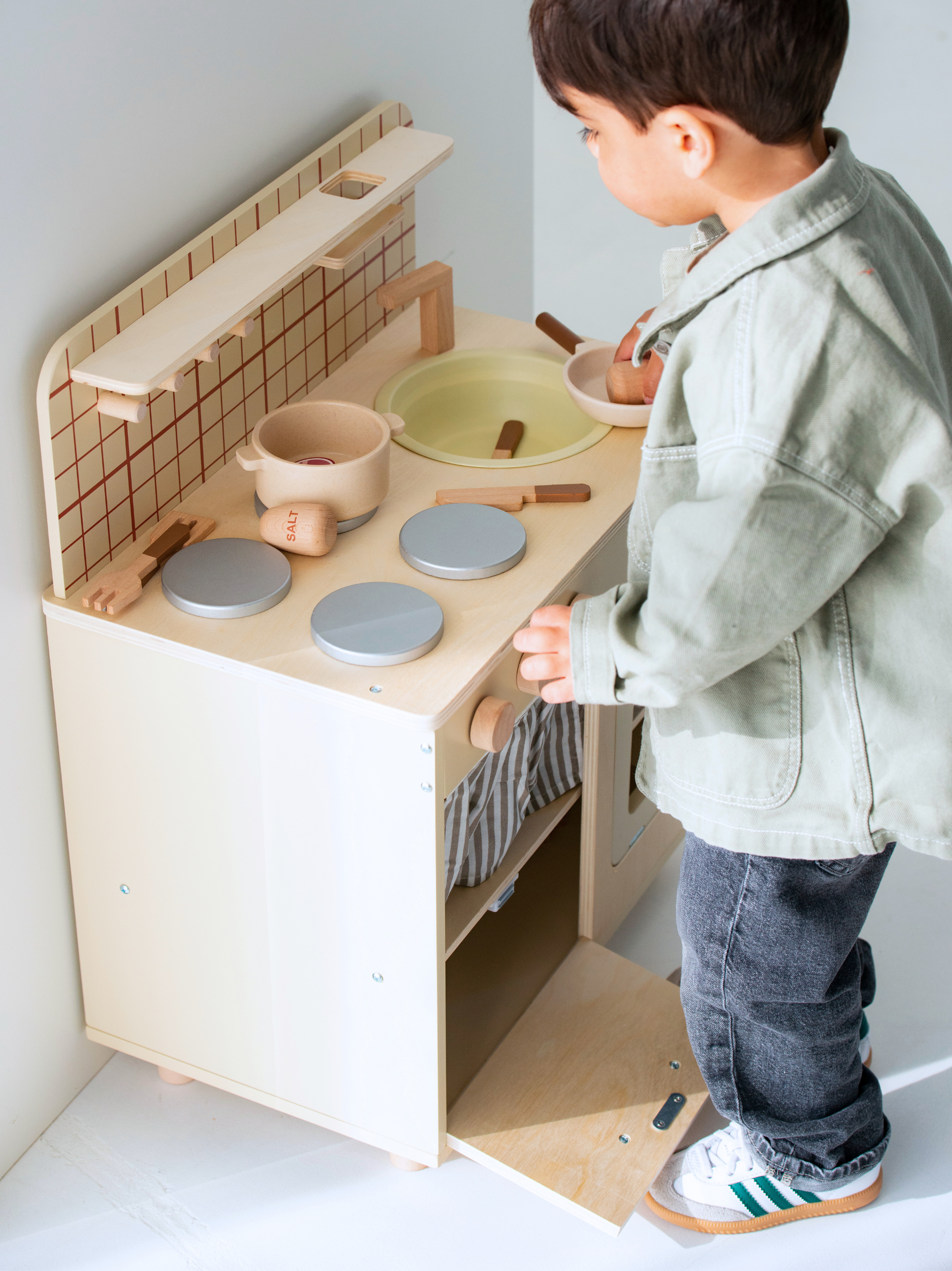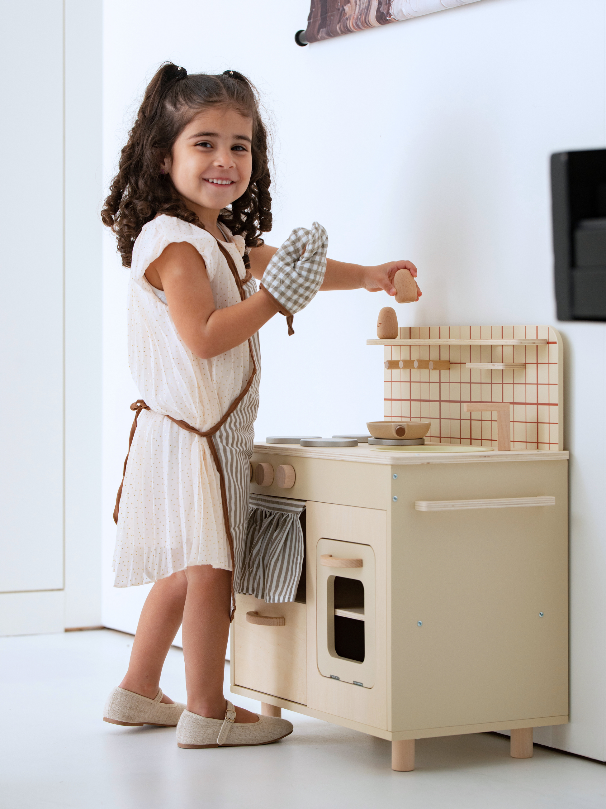 Naast de functionele waarde voegt de speelkeuken ook een vleugje charme toe aan de speel- of kinderkamer. De natuurlijke houten afwerking en het stijlvolle design passen goed bij verschillende interieurstijlen en maken de kamer van je kind compleet.