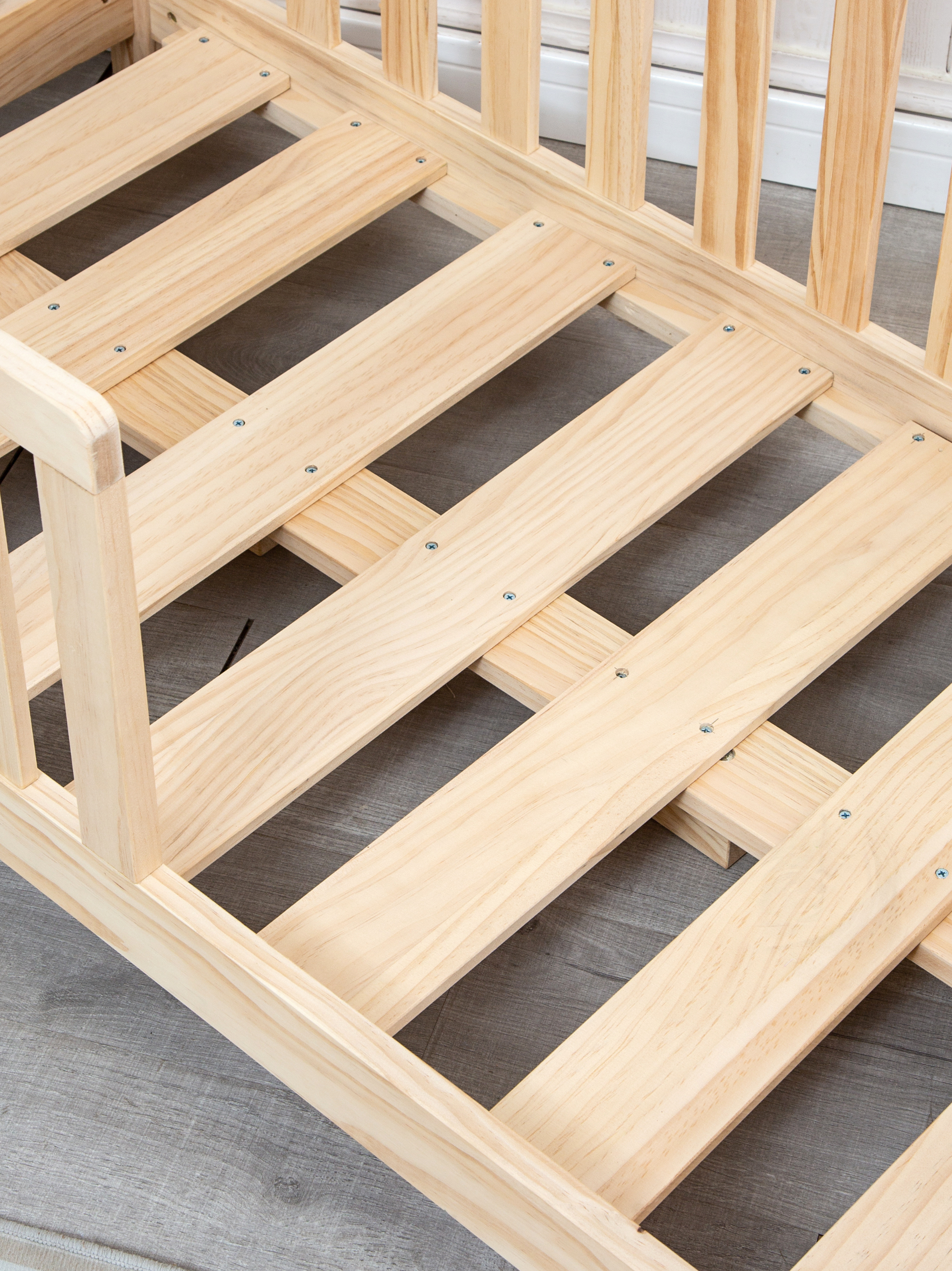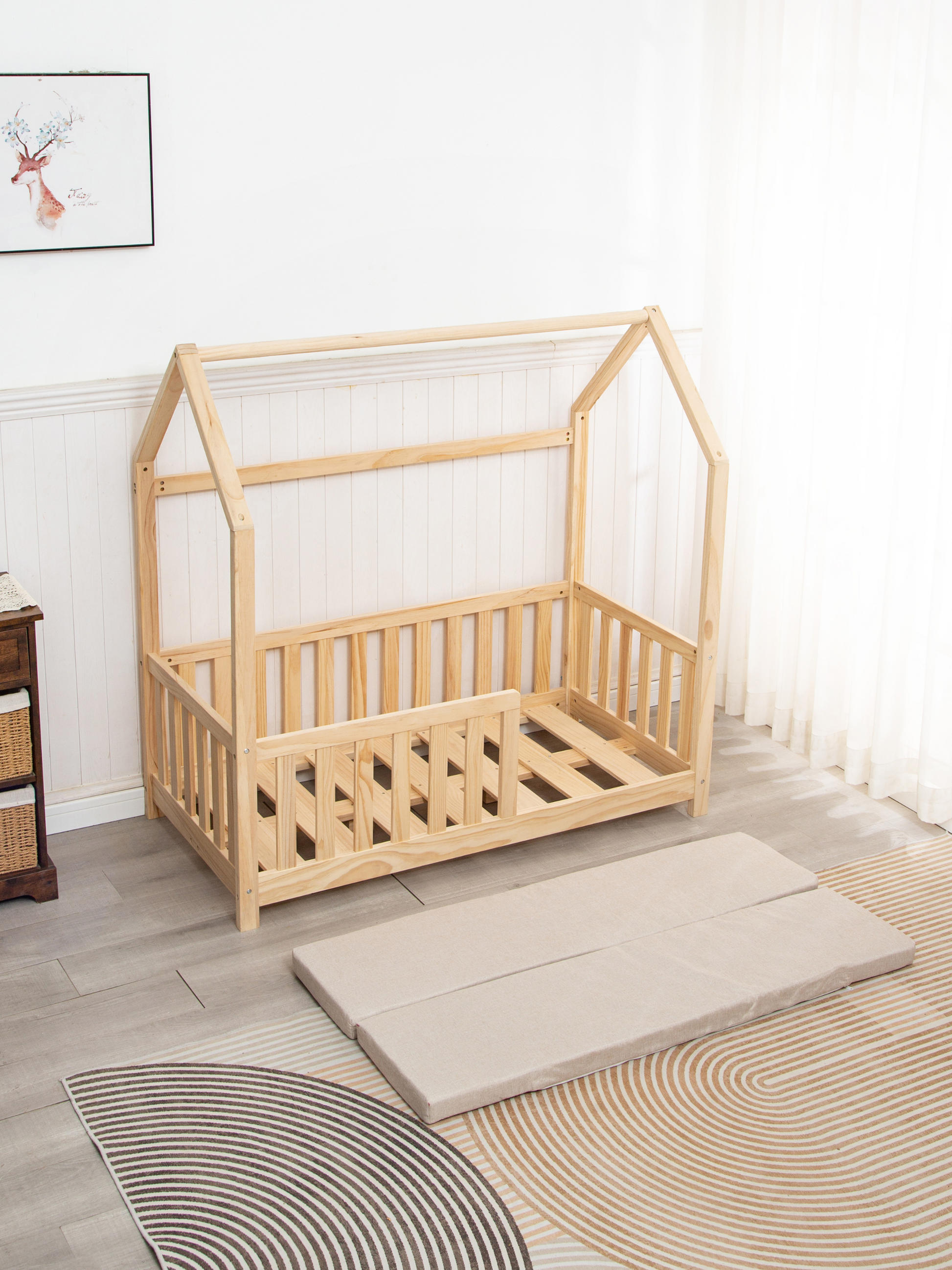 Gemaakt van stevig, hoogwaardig hout, zorgt het bed voor een veilige slaapplaats. Afgeronde hoeken en een lage instap maken het ideaal voor peuters en jonge kinderen. Het meegeleverde cellucotton matras biedt extra comfort en ademend vermogen voor een goede nachtrust.