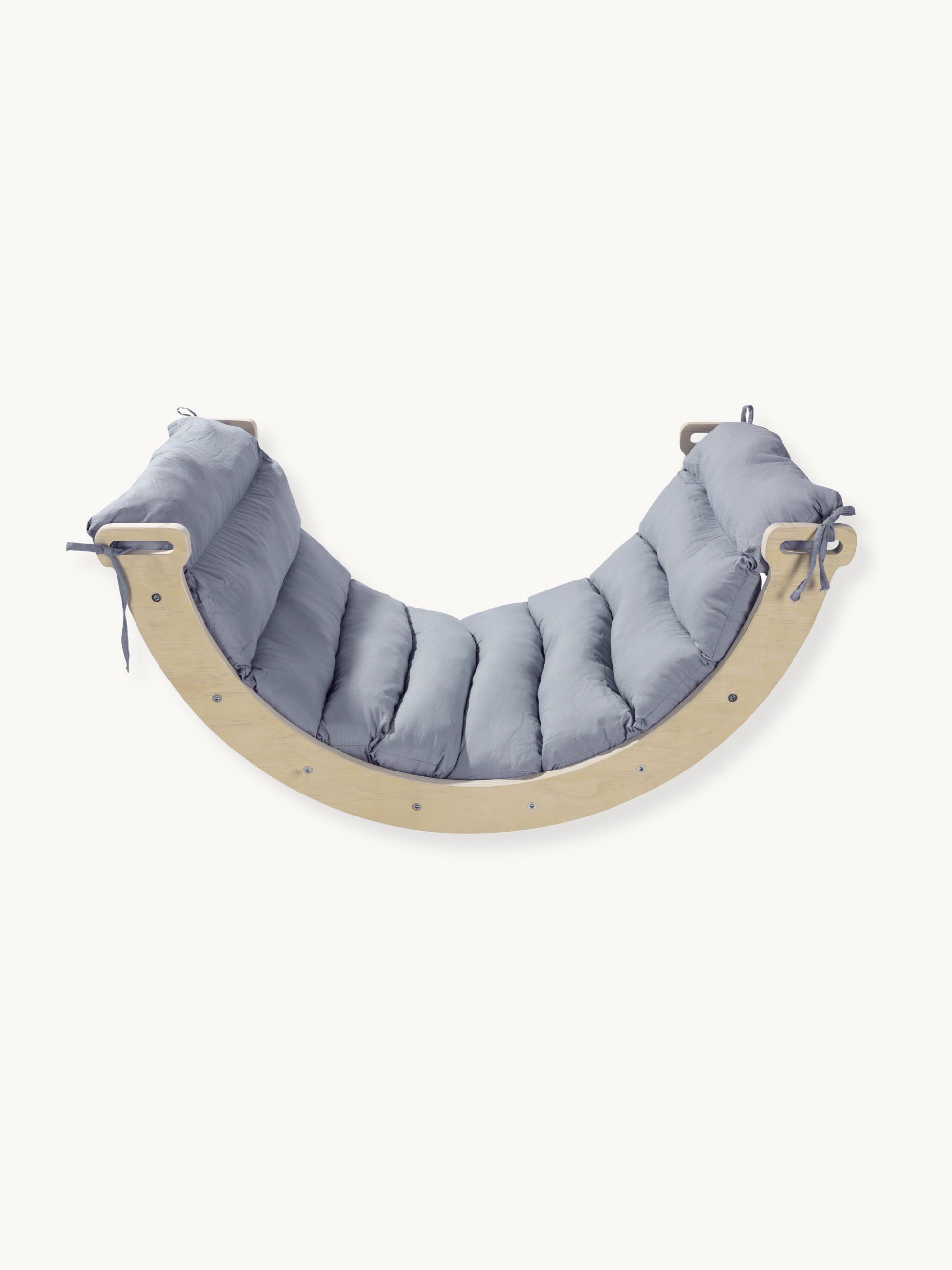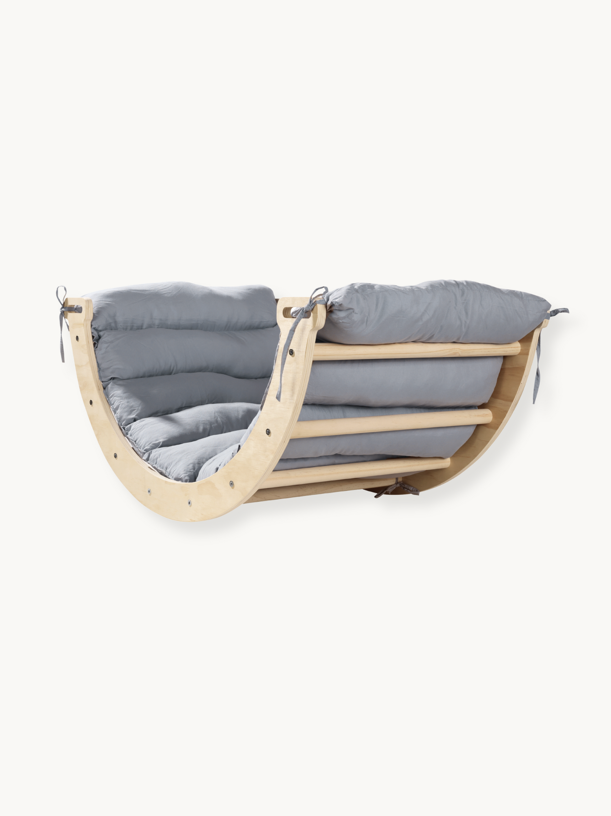 De klimboog is ontworpen volgens de Montessori-principes en ondersteunt zelfstandig en creatief spelen. Het veelzijdige ontwerp biedt ook ruimte om te ontspannen of kan met het meegeleverde kussen als schommel gebruikt worden.