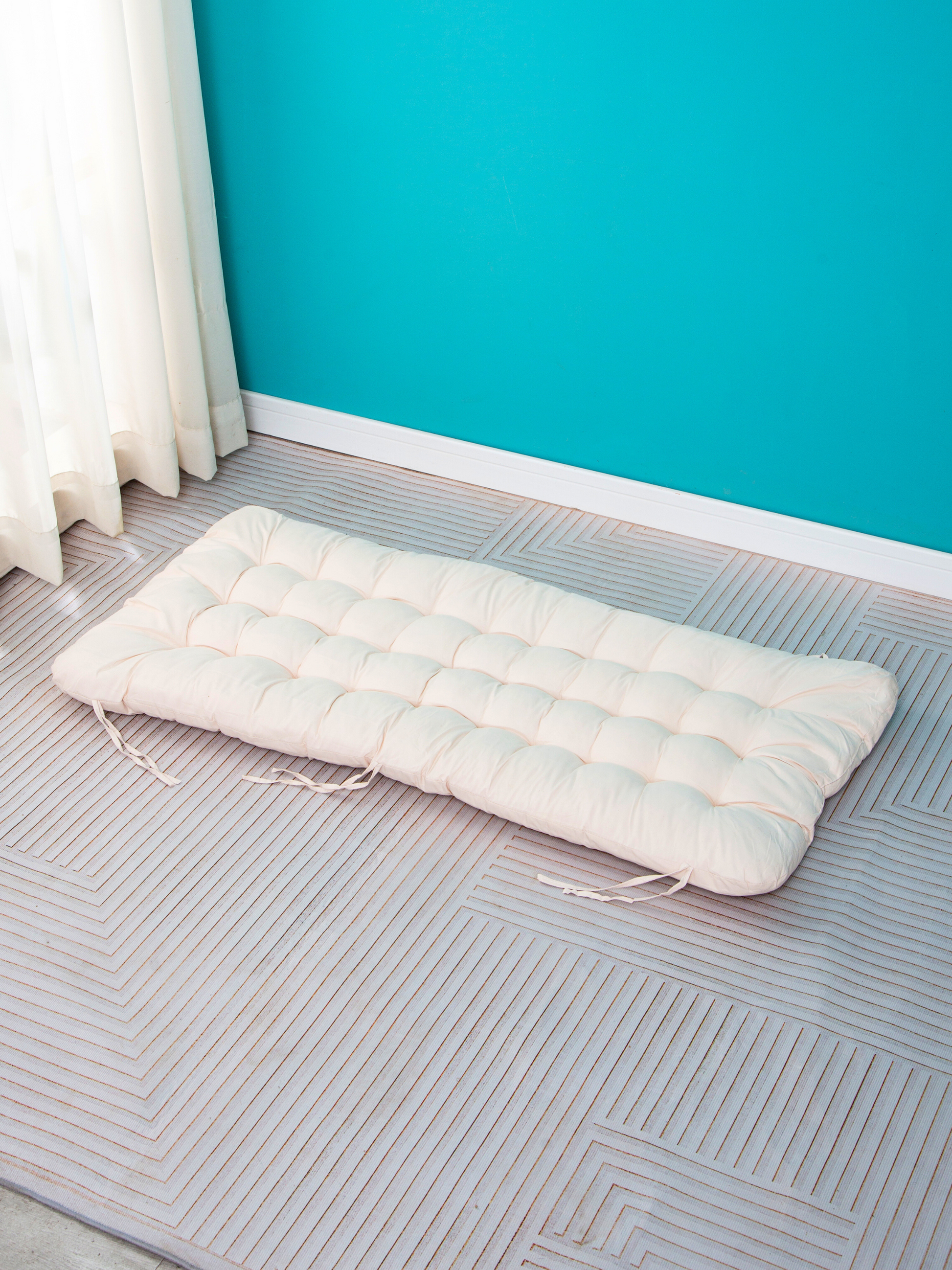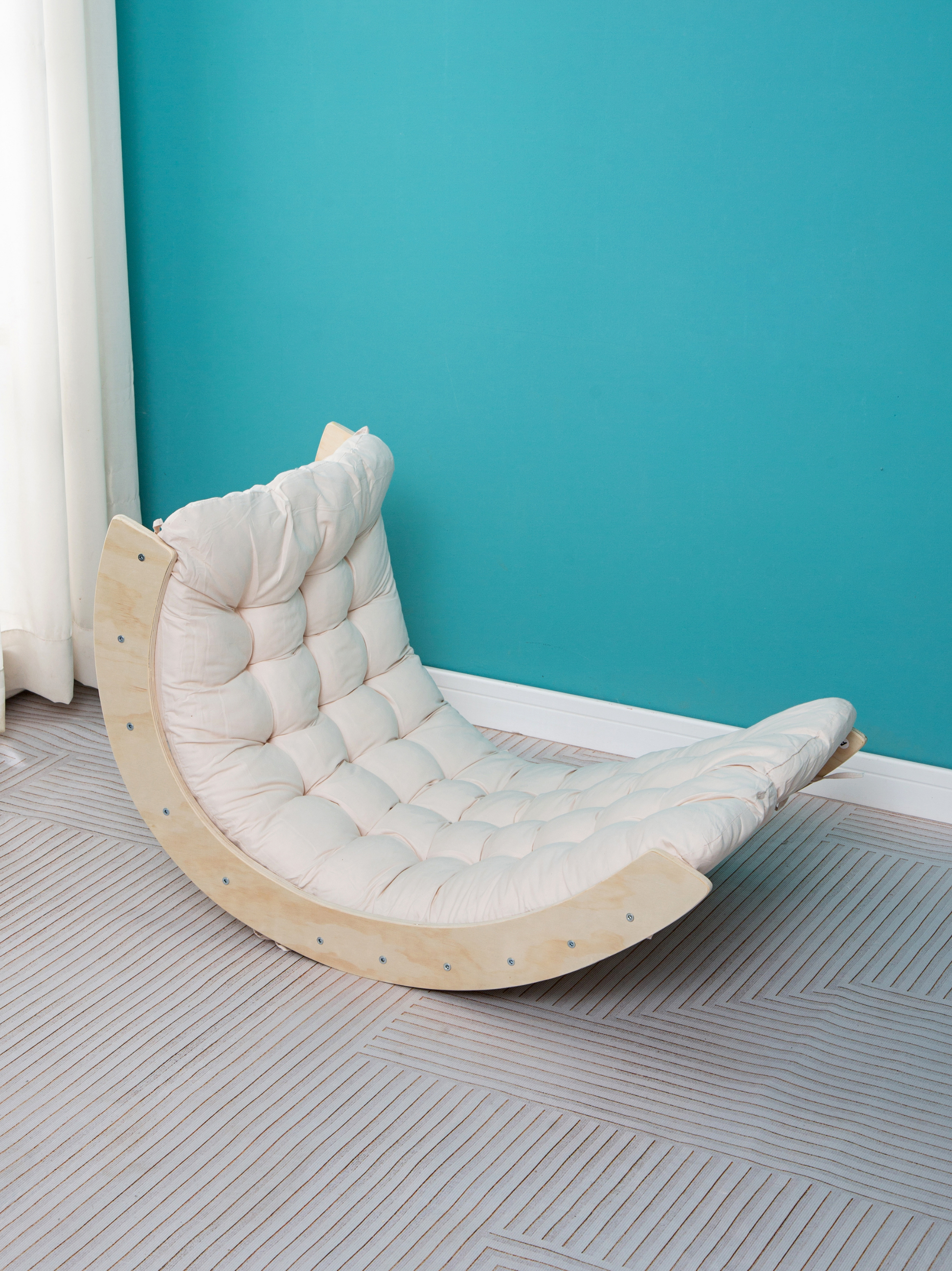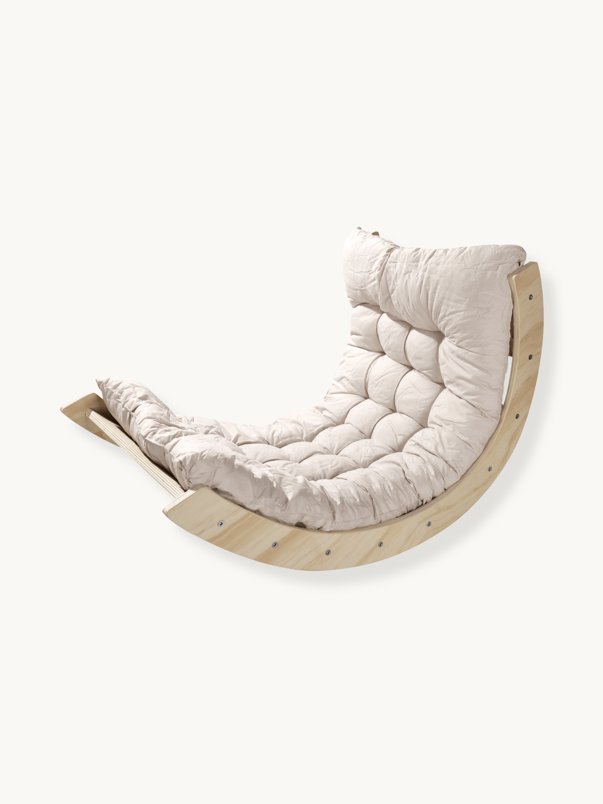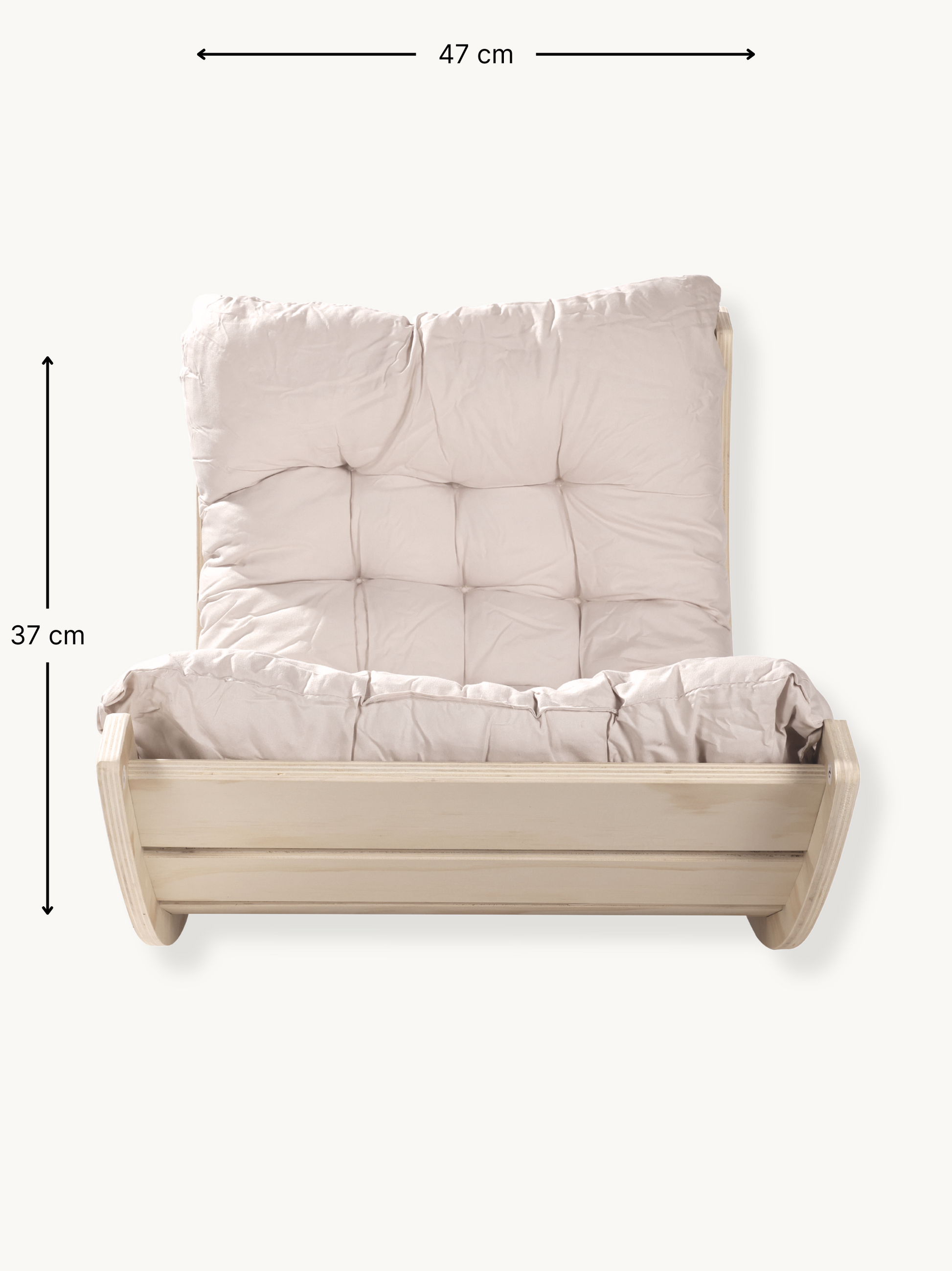 Gemaakt van stevig hout en afgewerkt met een stijlvol wit kussen voor extra comfort. De afgeronde randen zorgen voor een veilige speelervaring. Het frisse, natuurlijke ontwerp past prachtig in elke speelkamer of kinderkamer.