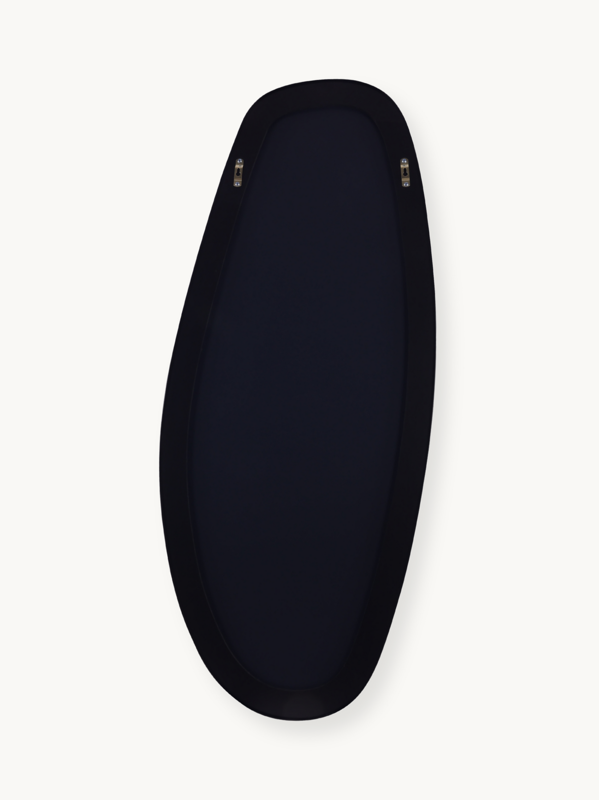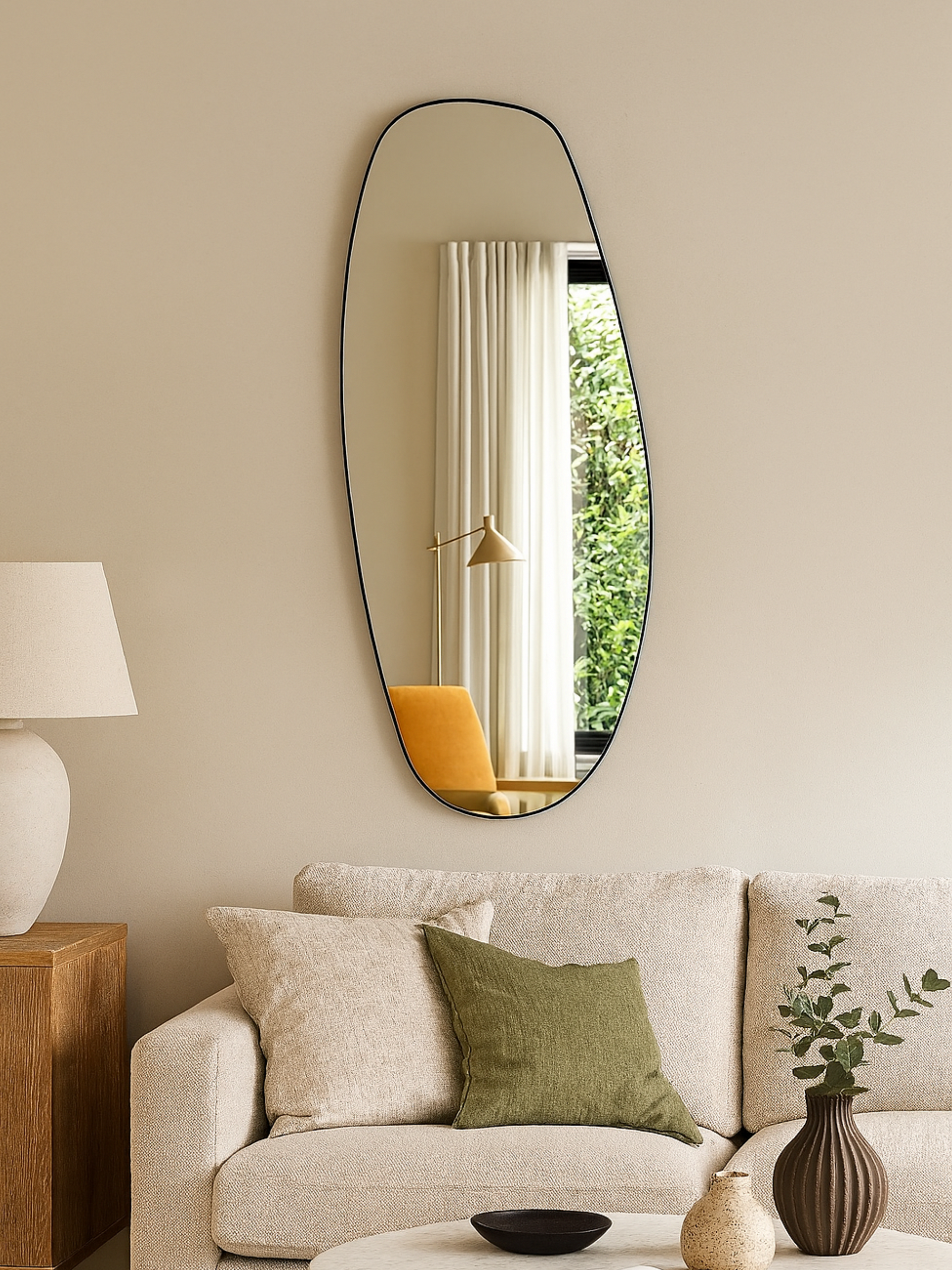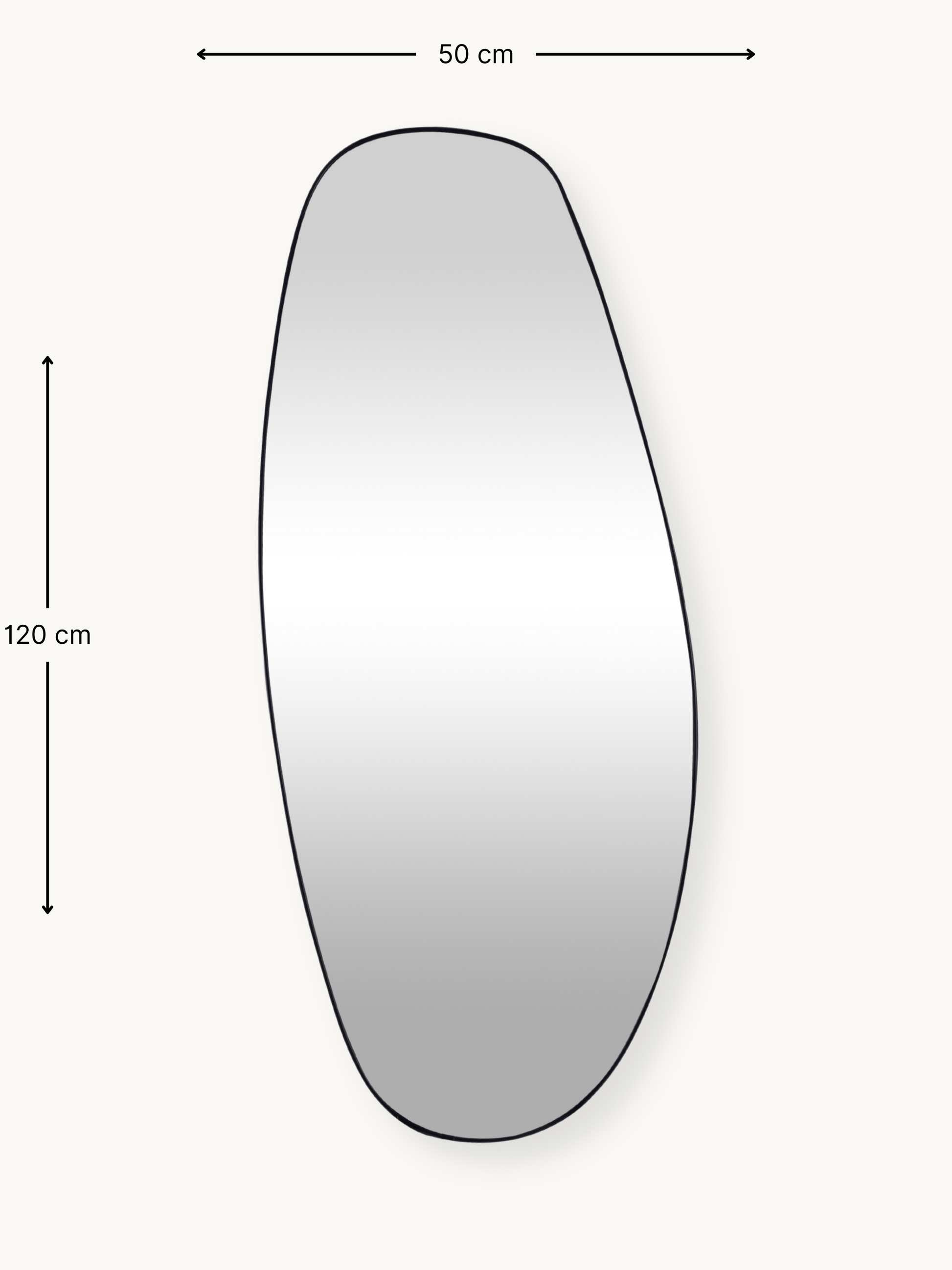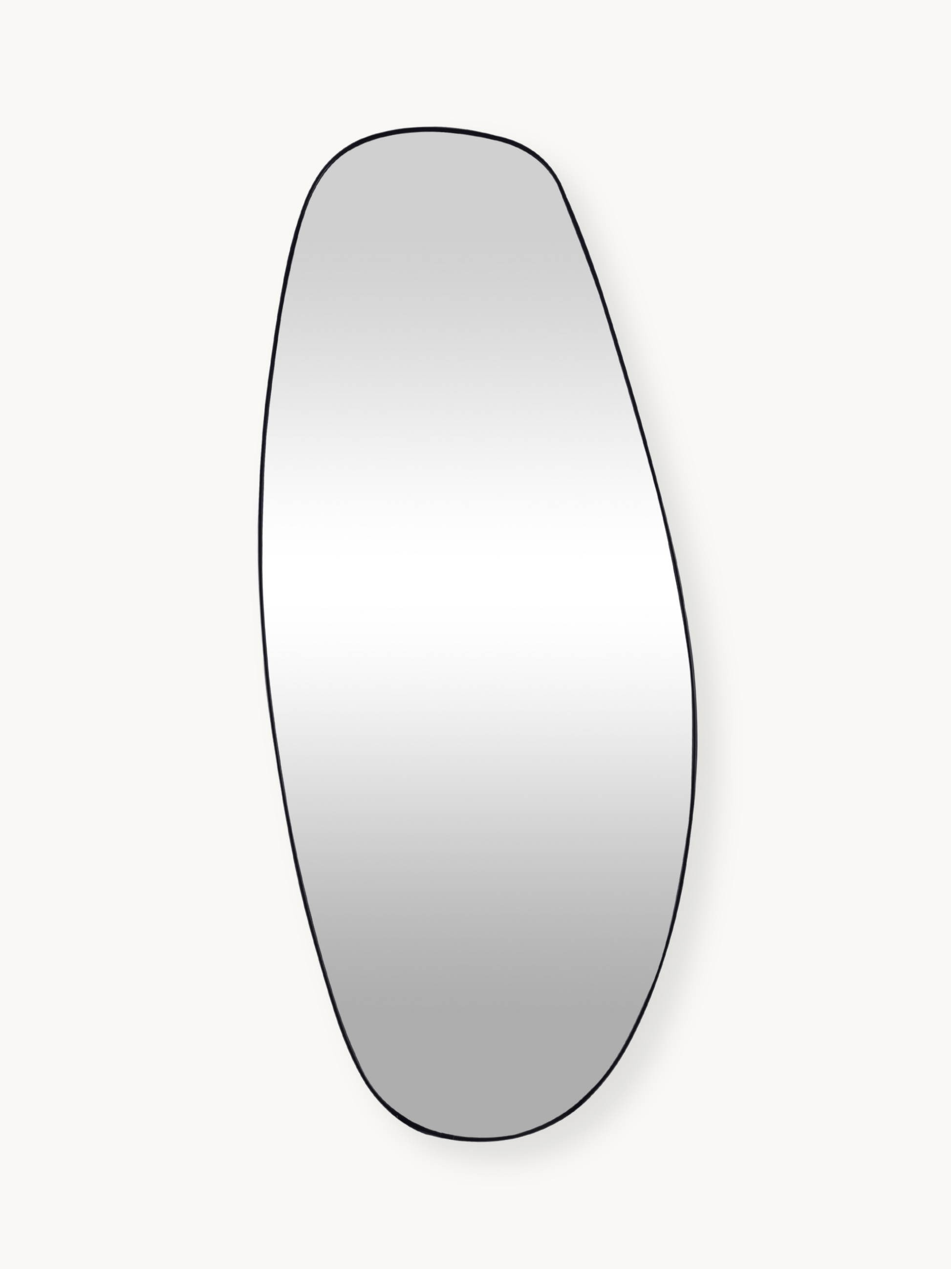 De SensaHome Leandro Wandspiegel combineert een moderne, asymmetrische vorm met een minimalistisch ontwerp. Deze elegante spiegel met een zwart frame is perfect voor wie houdt van stijlvolle, organisch gevormde interieurstukken.