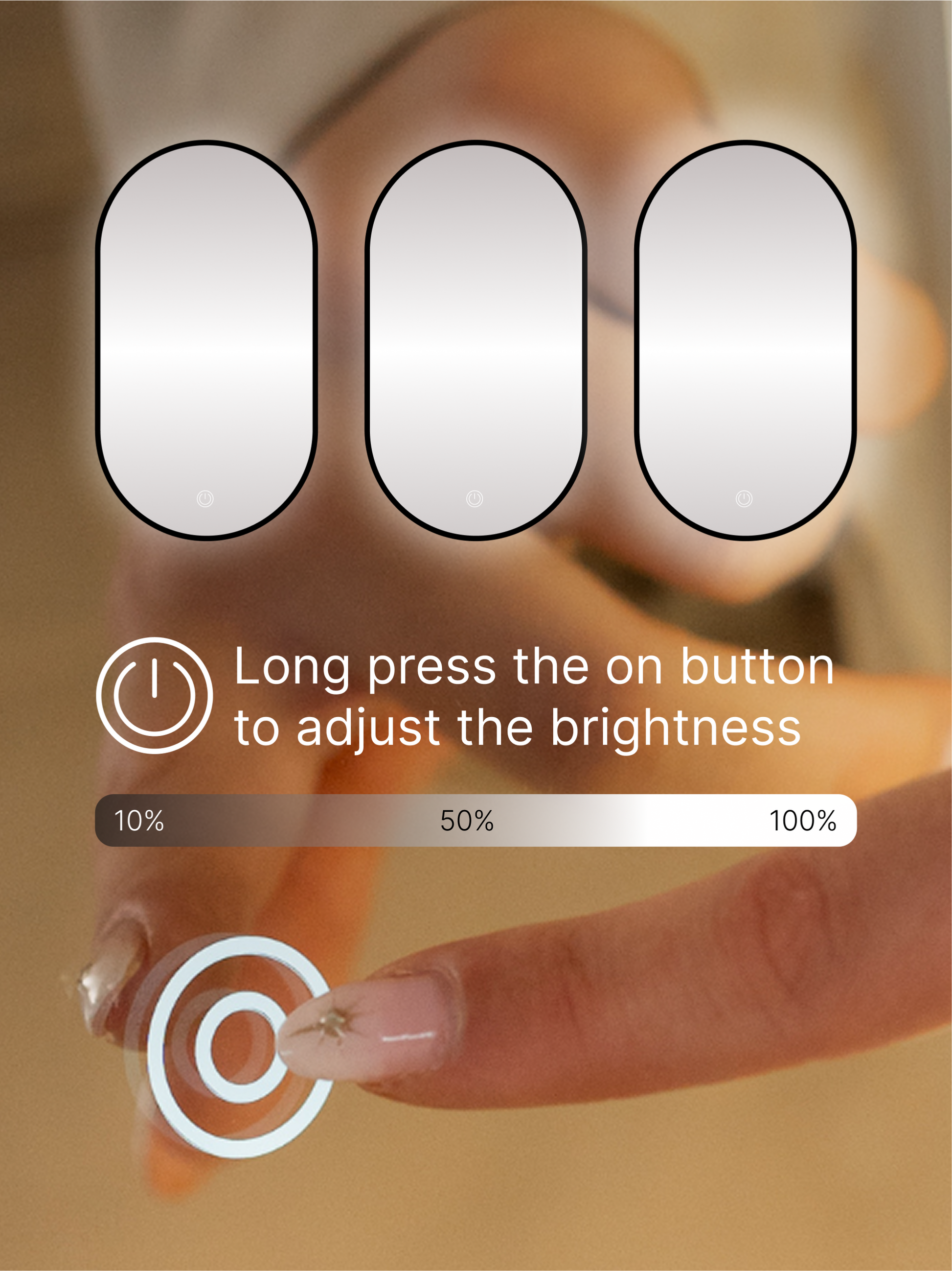 Met de ingebouwde dimbare ledverlichting kunt u de helderheid aanpassen aan uw voorkeuren en behoeften. Of je nu helder licht nodig hebt tijdens je ochtendroutine of 's avonds een zachtere gloed wilt creëren voor een ontspannen sfeer, deze spiegel biedt de perfecte verlichtingsoplossing.