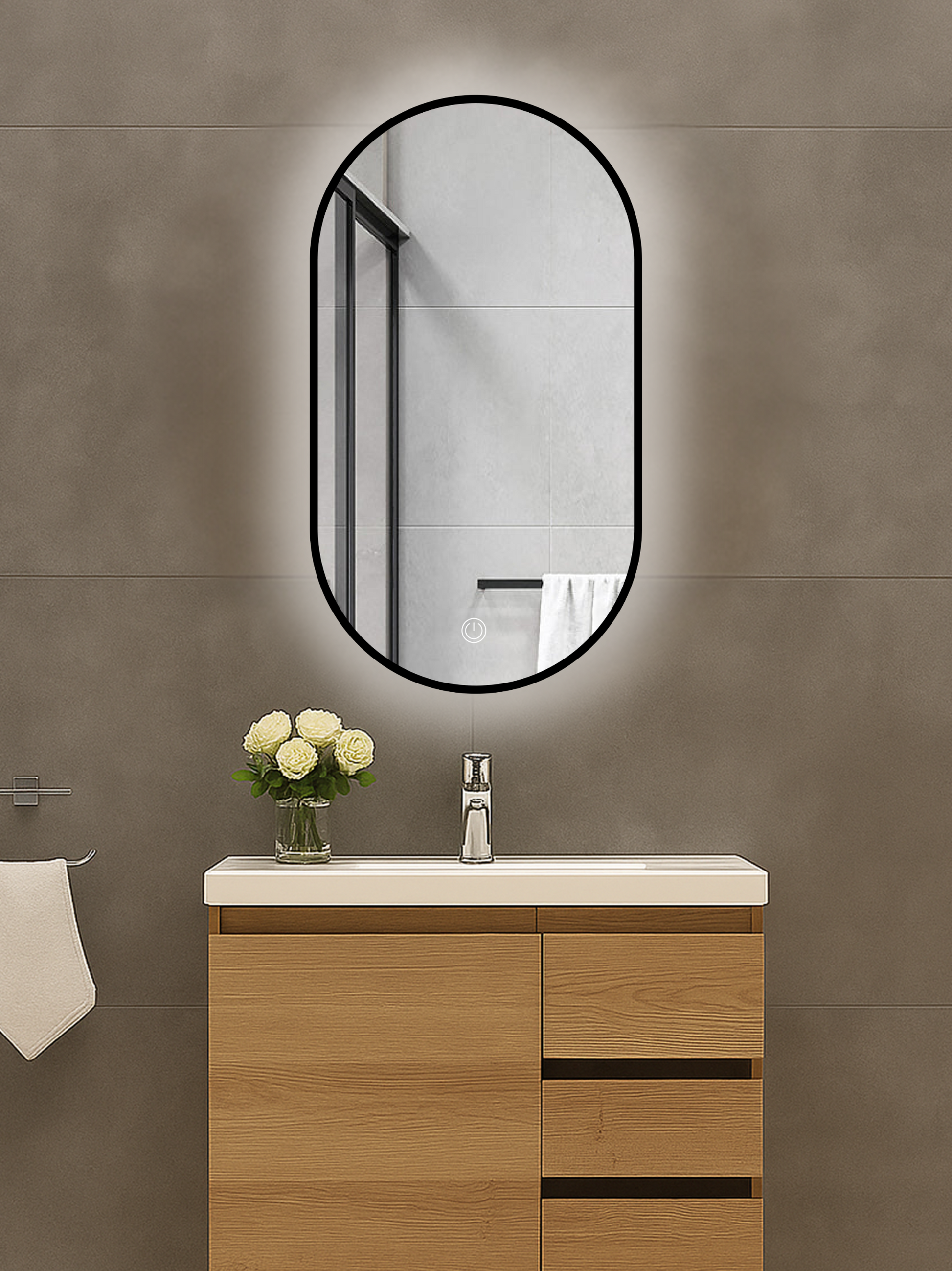 Ontdek de prachtige SensaHome ovale badkamerspiegel met dimbare ledverlichting en zwaar frame - wandspiegel. De perfecte mix van functionaliteit en stijl voor uw badkamer!