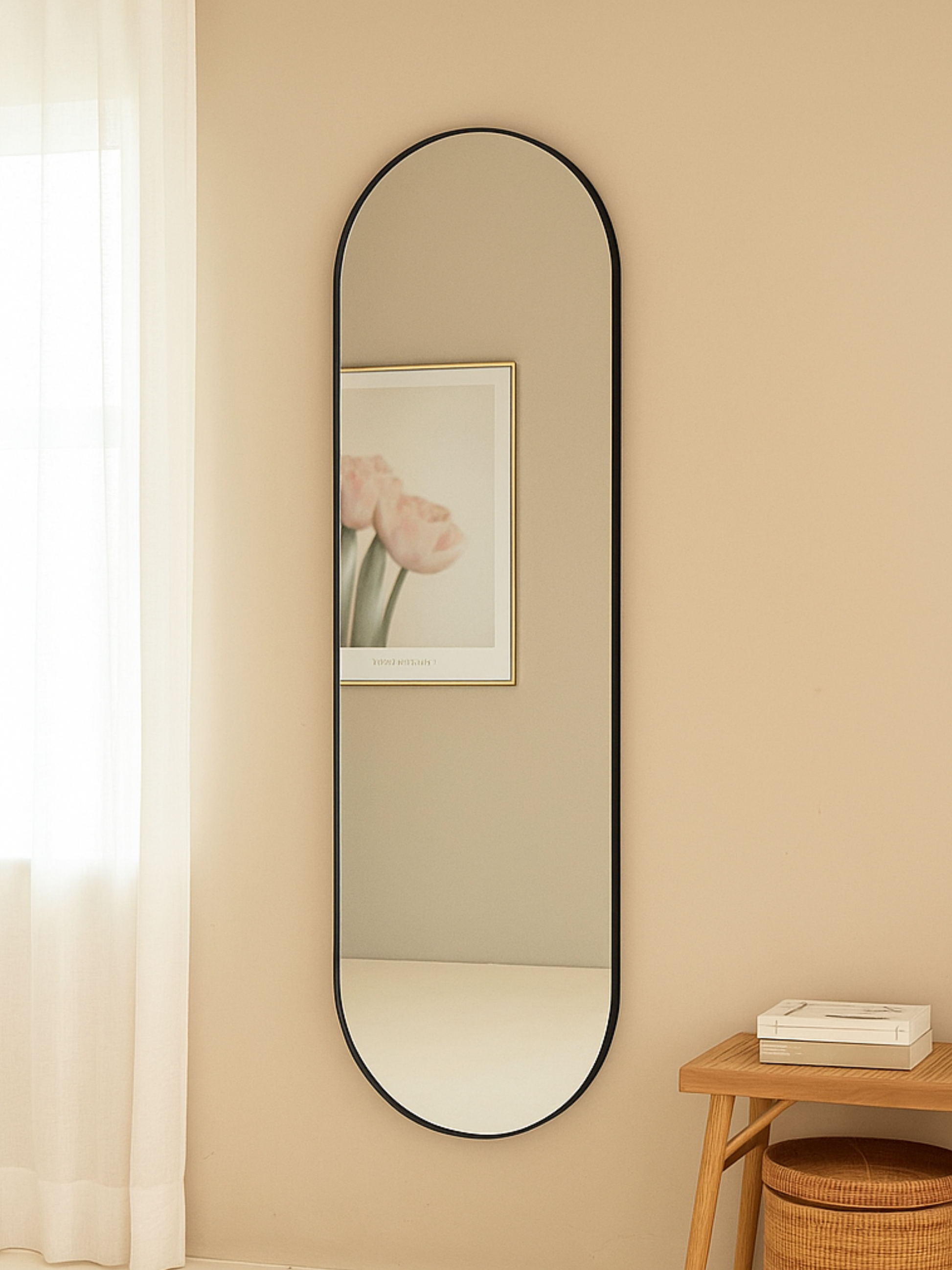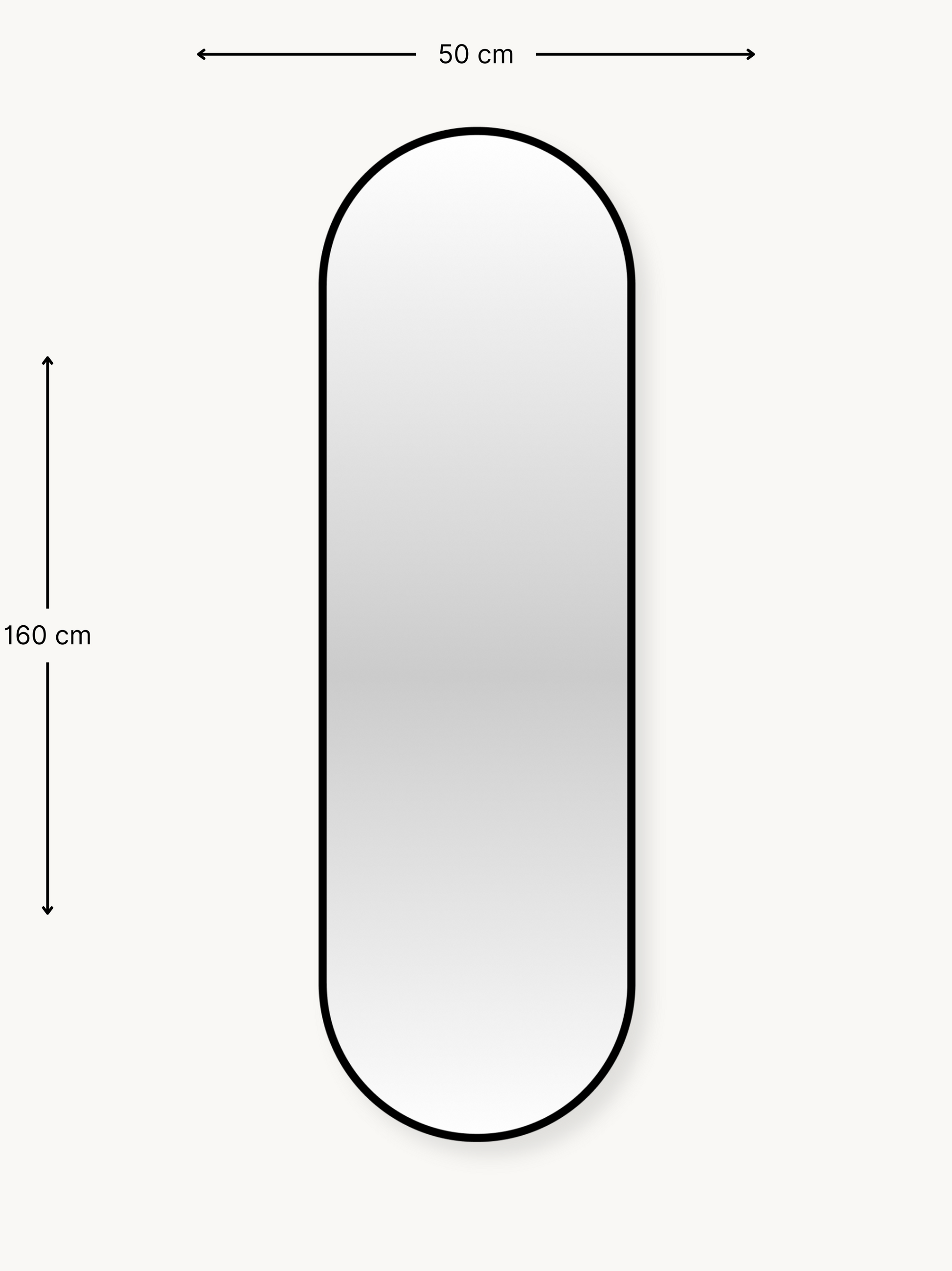 De spiegel heeft een breedte van 50 cm en de hoogte van de spiegel is 160 cm. Je kunt hem ook eenvoudig tegen de muur plaatsen zonder te boren voor een verplaatsbare toevoeging aan je interieur.