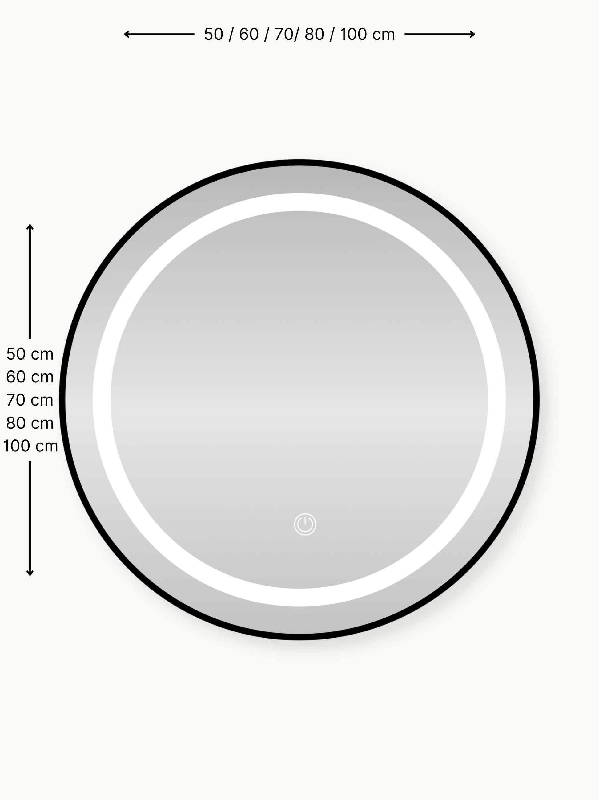 Verkrijgbaar in Ø50 cm, Ø60 cm, Ø70 cm, Ø80 cm en Ø100 cm, zodat je de perfecte maat kunt kiezen die bij je badkamer en interieur past.