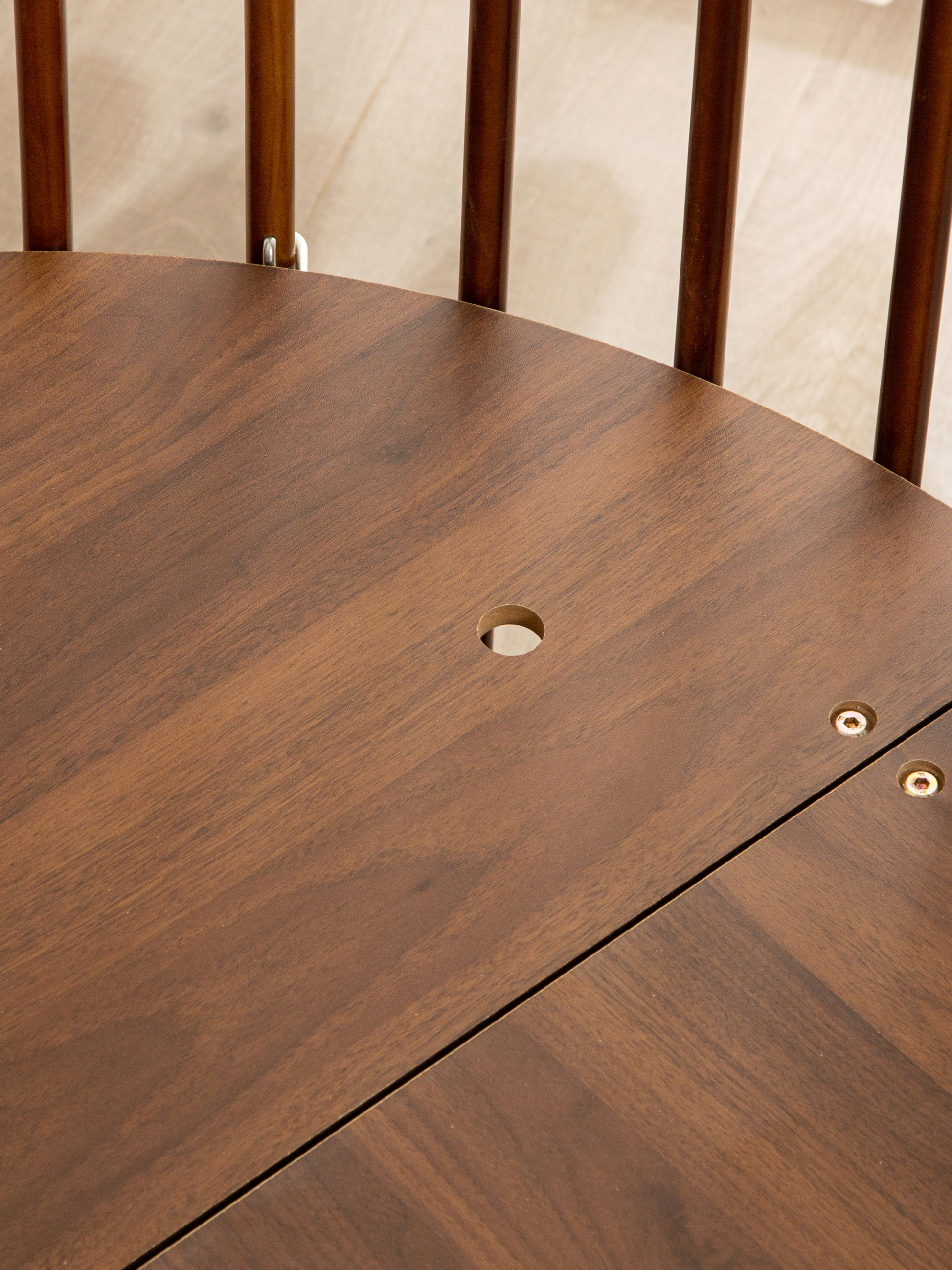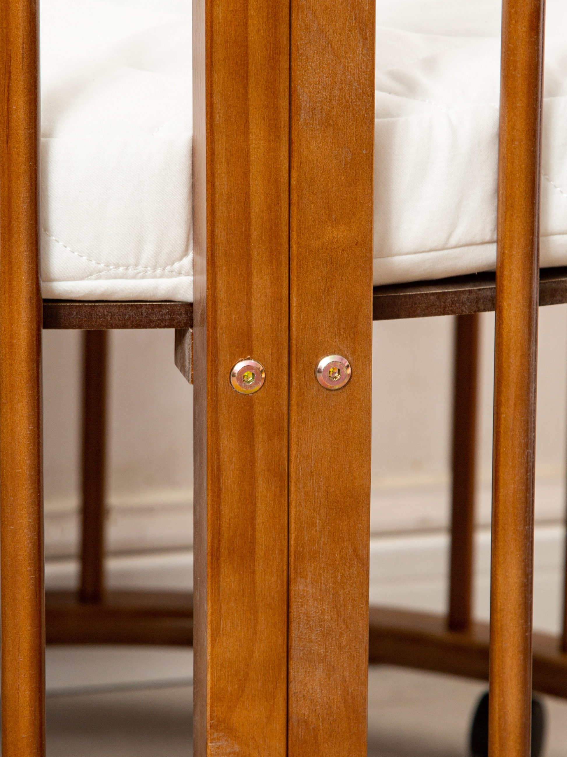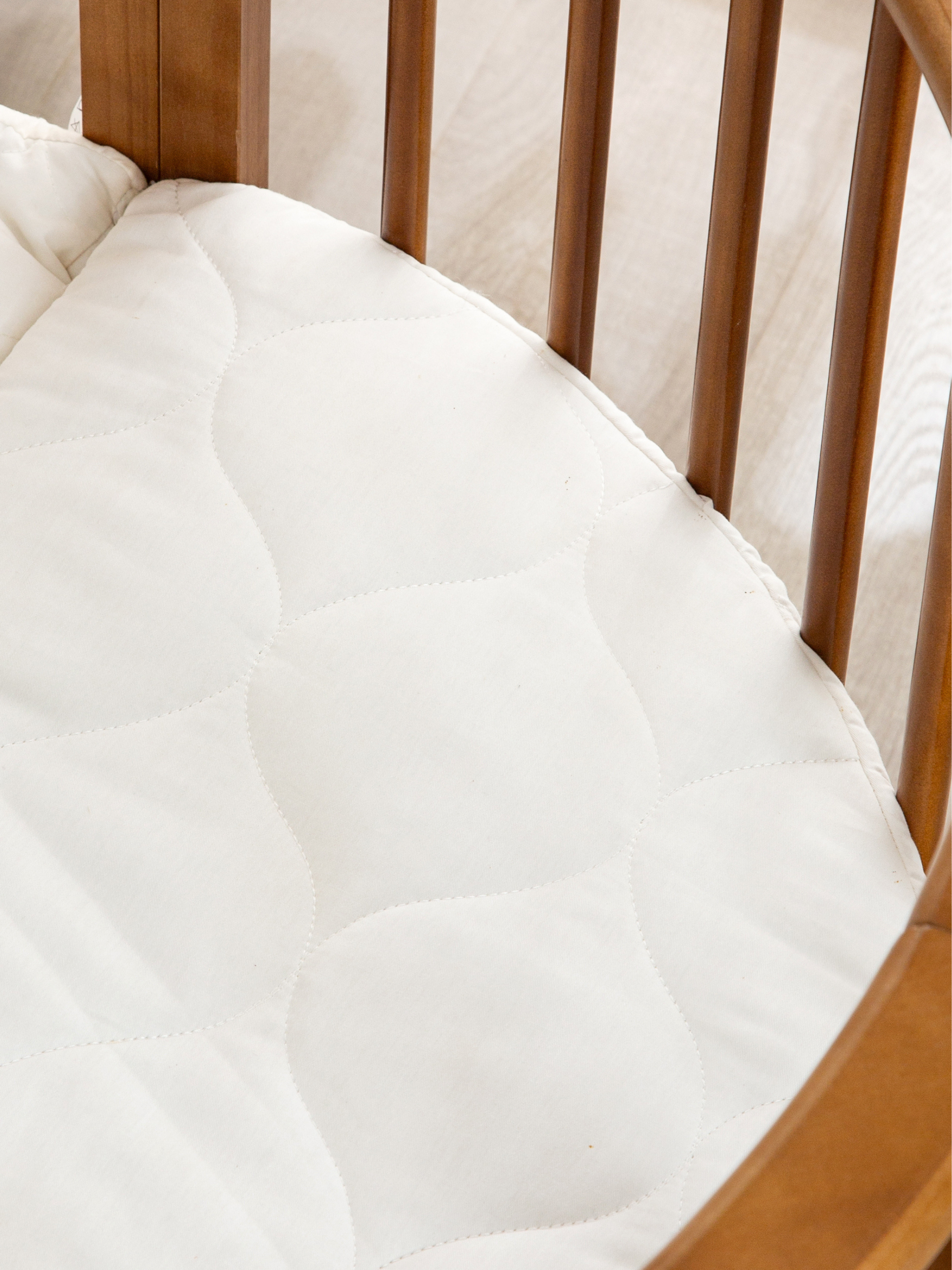 De unieke ronde vorm maakt deze babybox een echte blikvanger in elke ruimte. De bruine houten afwerking geeft hem een rustige en moderne uitstraling die past bij verschillende interieurstijlen.