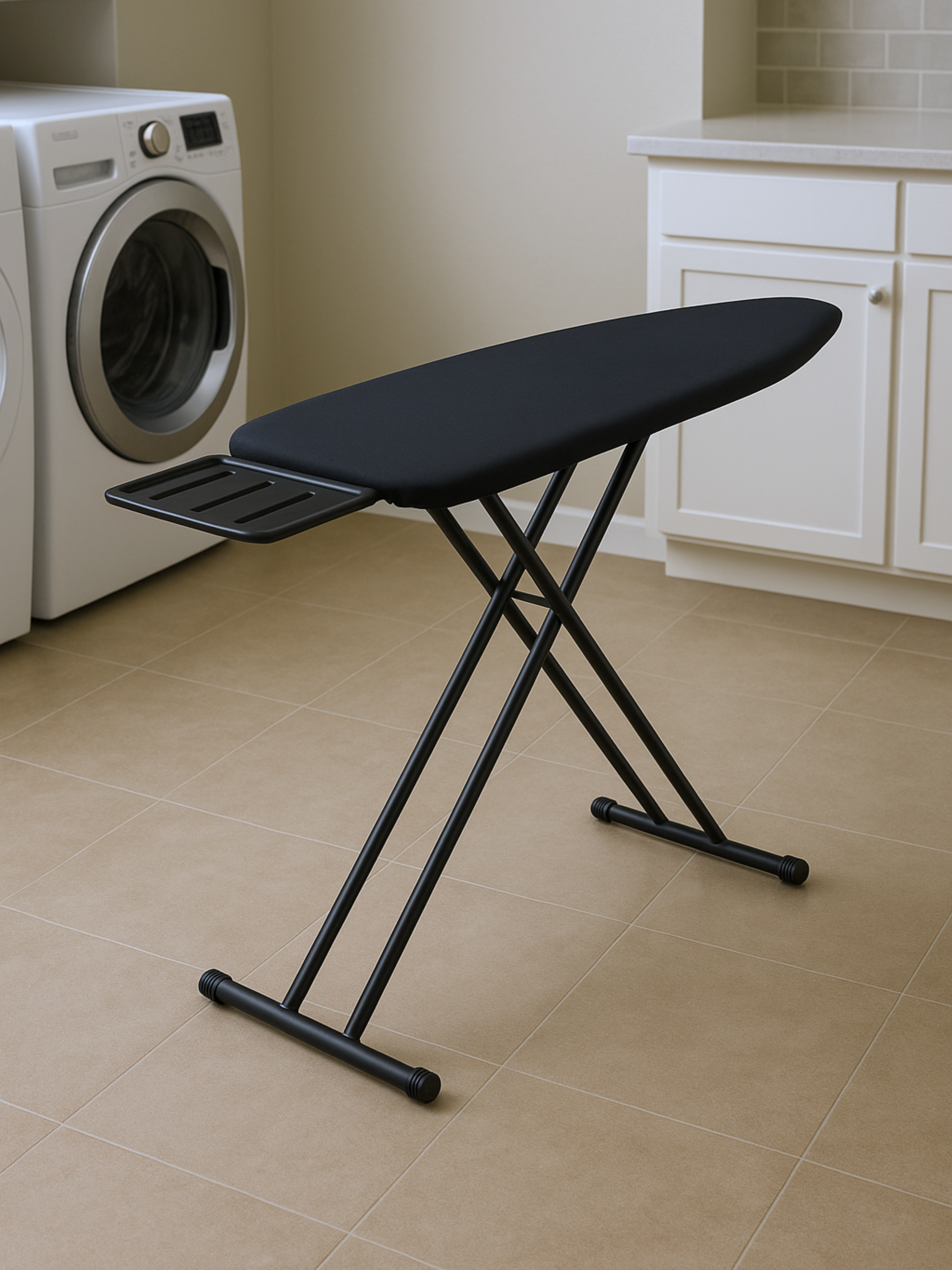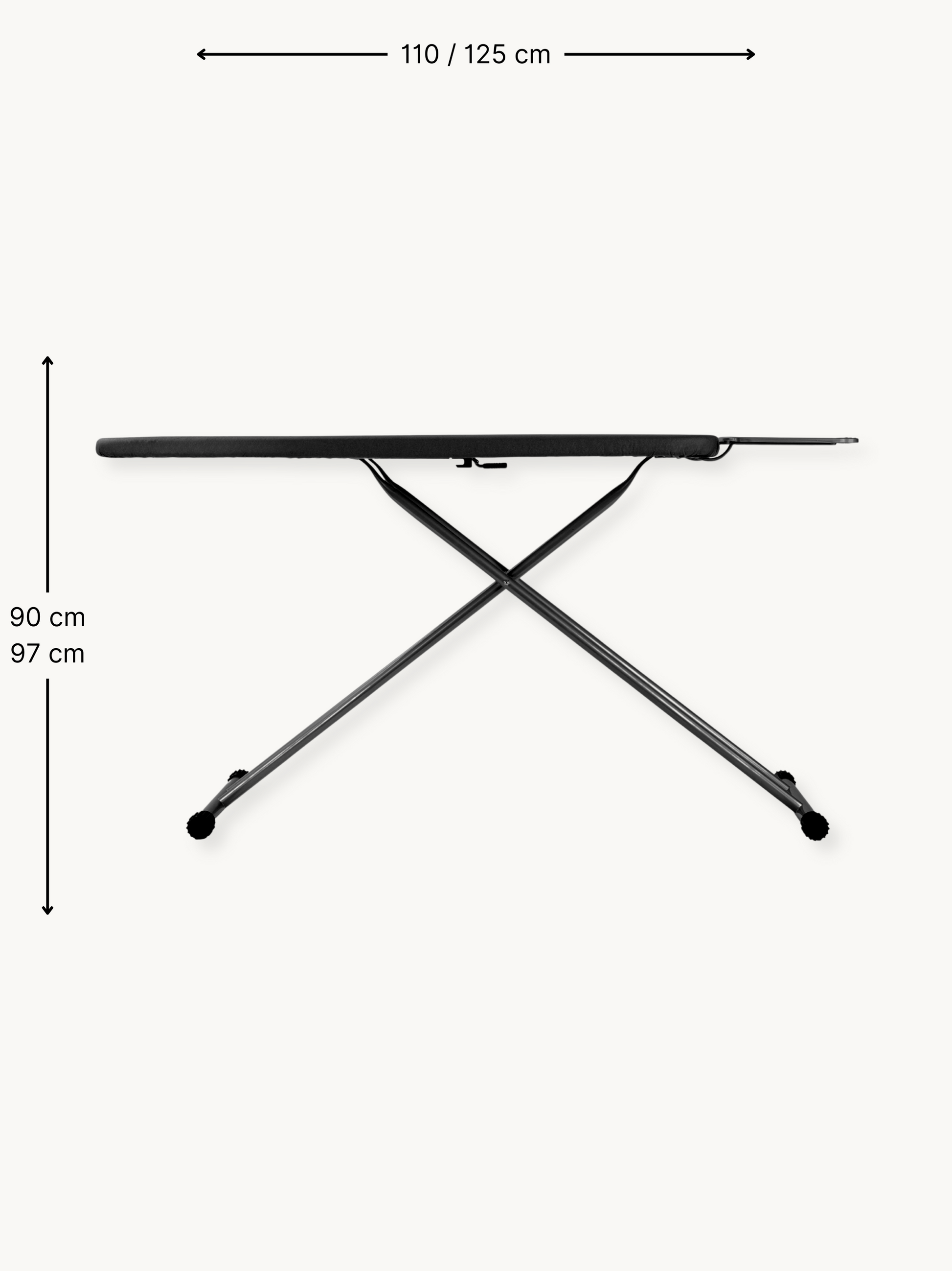 Deze strijkplank is gemaakt van staal en hoogwaardig katoen en biedt stabiliteit en een lange levensduur. De denimzwarte hoes geeft je strijkkamer een stijlvolle uitstraling.