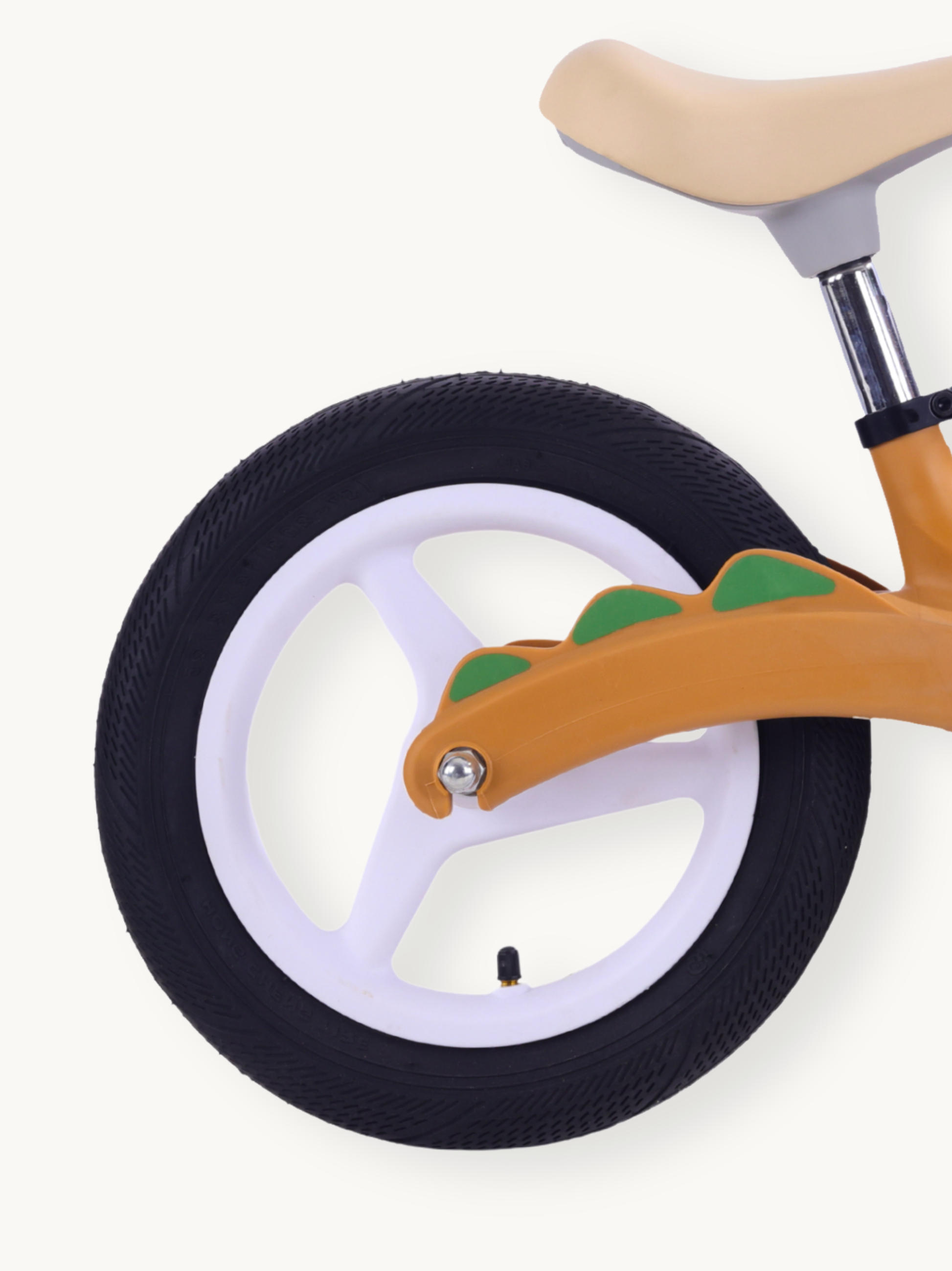 The brown design and child-friendly shape make this bike appealing to young adventurers. The Paxi balance bike is the perfect first step toward cycling without training wheels.