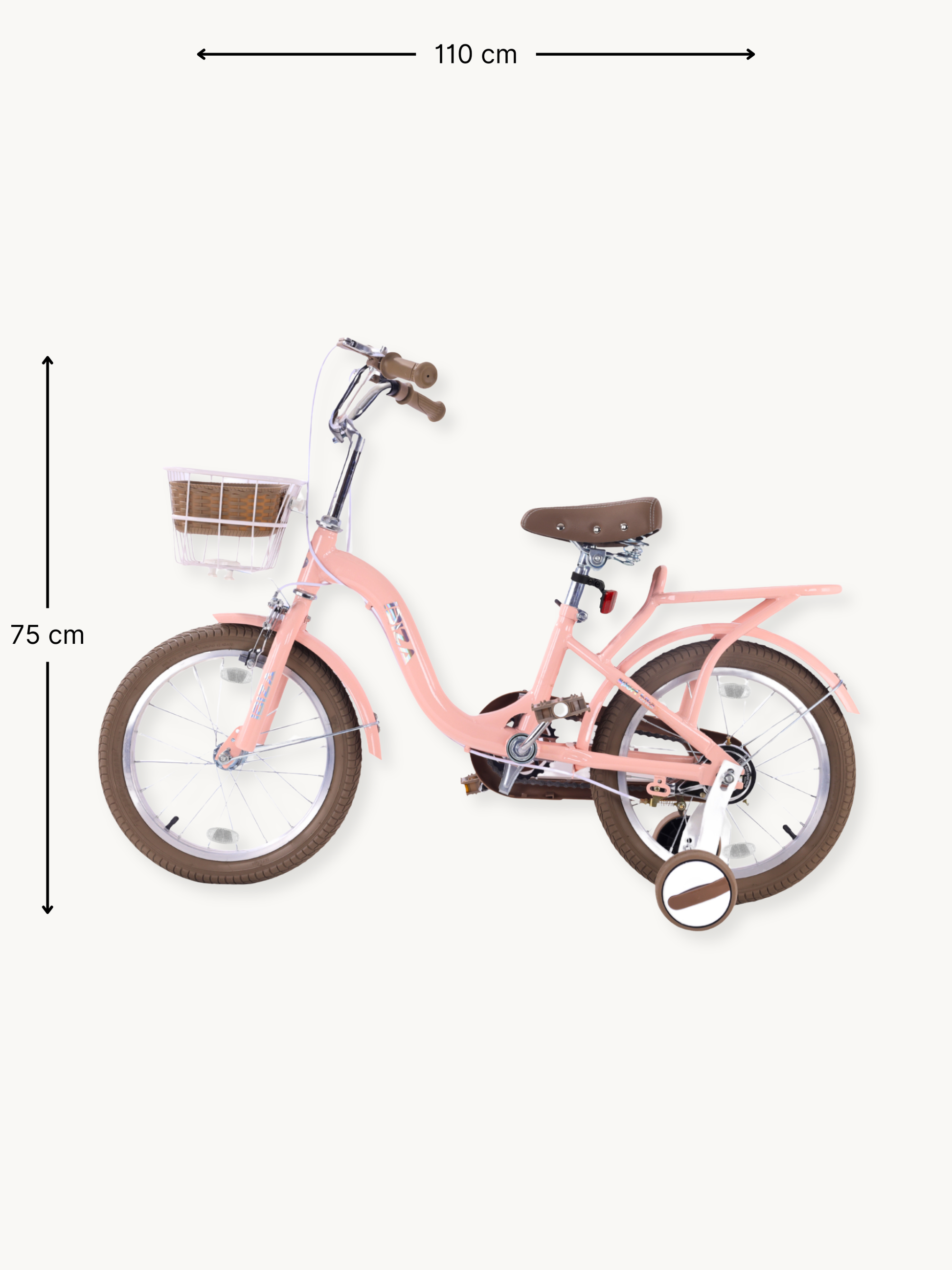 The Ibiza children’s bike is made from strong materials that ensure stability and a safe riding experience. The solid carbon-steel frame and anti-slip rubber tires give children the confidence to ride safely.