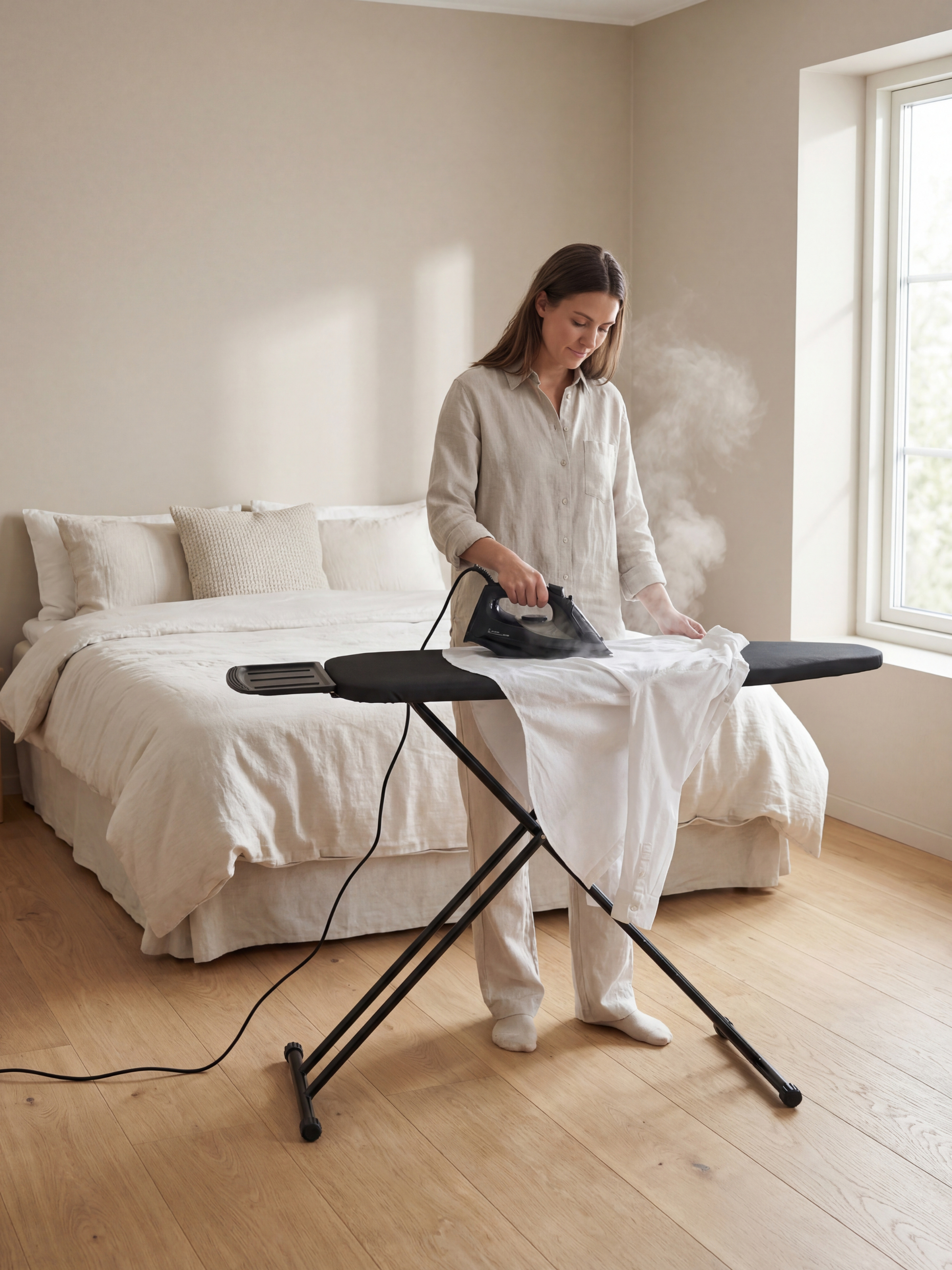 Vyrobená z ocele a kvalitnej bavlny, táto žehliaca doska ponúka stabilitu a dlhú životnosť. Denimový čierny poťah dodáva štýlový vzhľad vašej žehliacej miestnosti.